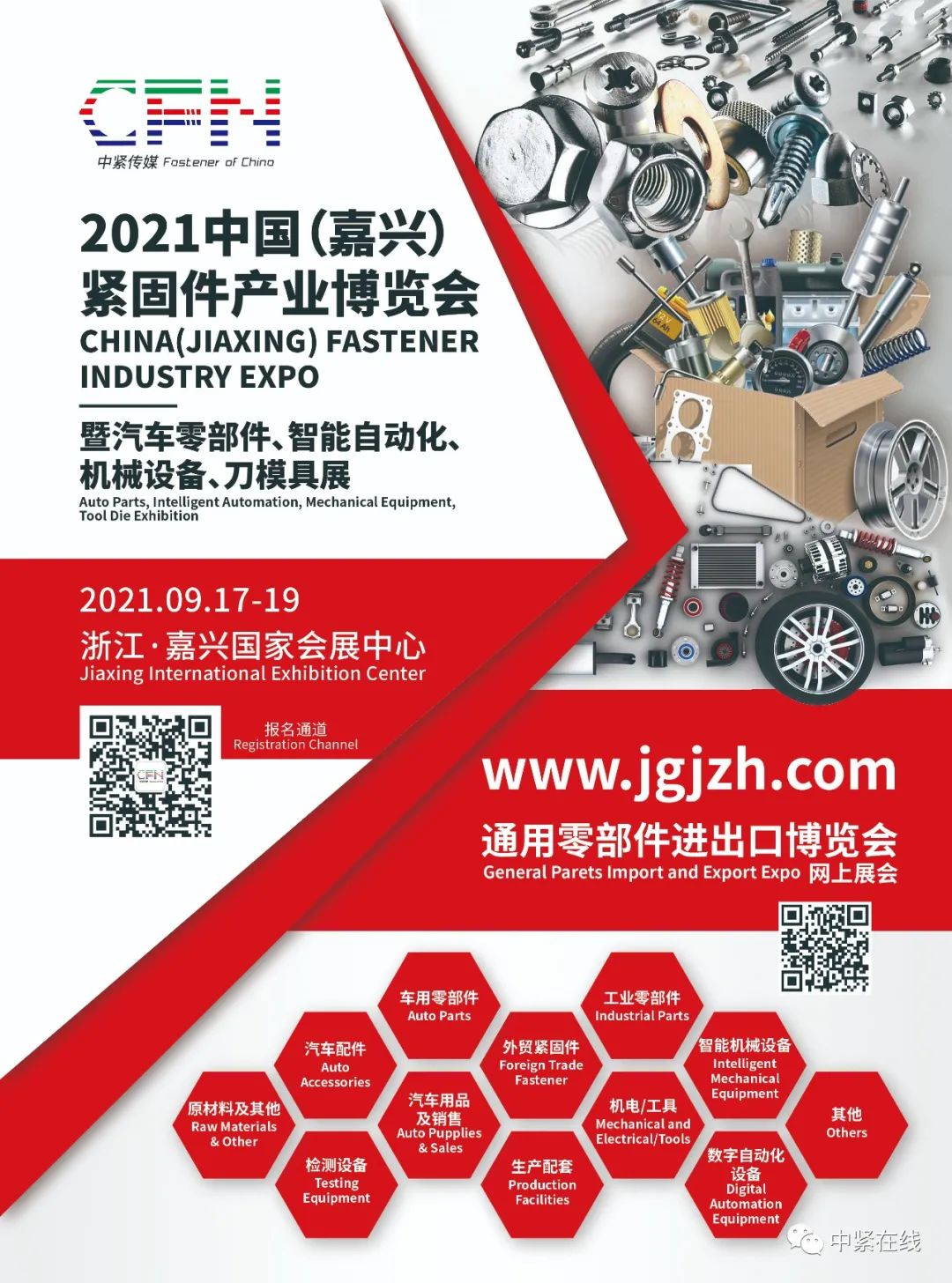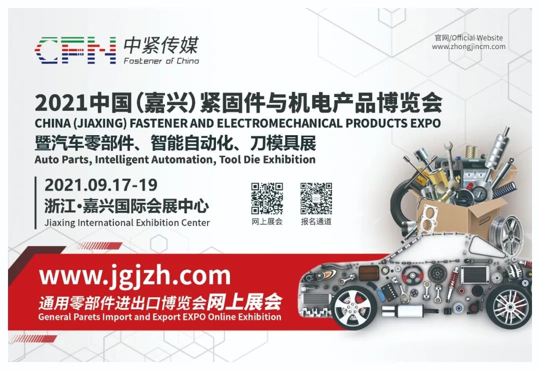 9月17日-19日,嘉兴又将迎来一年一度的紧固件盛会——2021中国(嘉兴)紧固件与汽车零部件博览会。今年中紧直播将前所未有地连续进行四场直播,让不能亲临现场的紧固件同行们也能全方位感受2021中国(嘉兴)紧固件产业博览会的魅力!第一场:2021中国(嘉兴)紧固件与汽车零部件博览会中紧直播将带着你一起逛展会,从生产企业到设备企业,从行业龙头企业到精品特色企业,还有紧固件线上交易会、海外现场采购对接会、“梦回华夏——丰拓螺母工业之旅”、谷歌数字营销助力紧固件产业破浪出海”讲座……主持人都将带你一一领略。