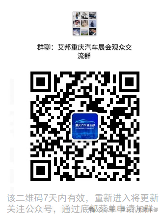 扫码点击底部菜单栏即可加群,或公众号对话框输入“重庆汽车展”即可获取加群二维码。