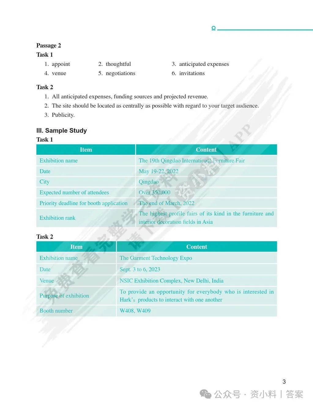 《会展英语》是大学英语教材中的一门重要课程,旨在培养大学生在会展行业中运用英语的能力。它涵盖了会展基础知识、会展策划、会展营销、会展管理等多个方面,对于未来想从事会展行业的大学生来说,这是一本非常实用的教材。