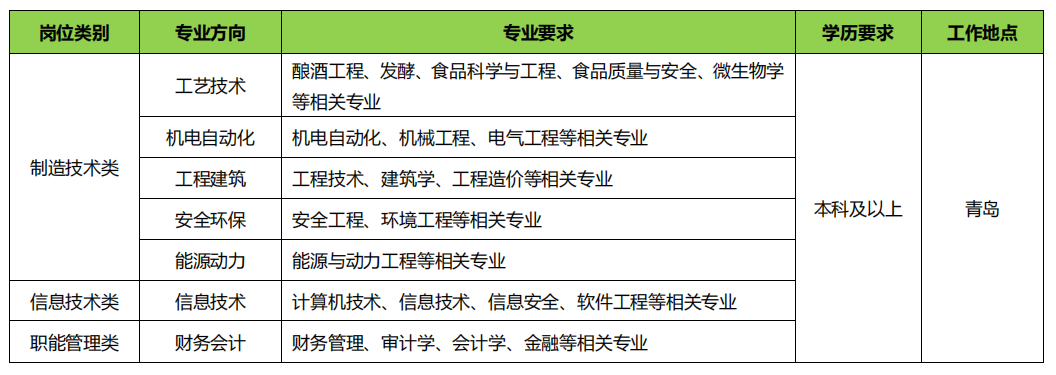 菁英计划(制造&供应链):主要面向青啤公司制造系统&供应链系统的人才储备需求进行优秀毕业生的选拔,通过统一入职集训、基层轮岗、导师辅导、线上/线下培训等方式,推动毕业生逐步成长为公司的专业人才和管理人才。
