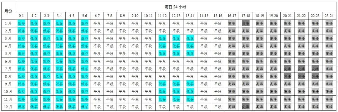 高峰(含尖峰)时段16:00至24:00,其中尖峰时段为1月和12月的17:00至18:00;