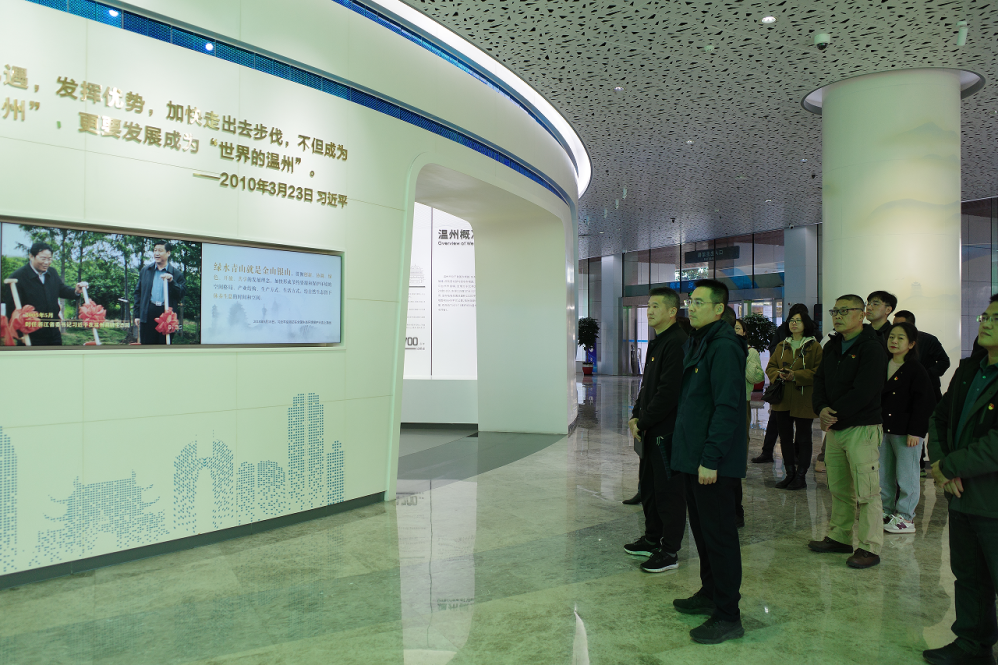 人之所向,城之所望。全体党员来到位于惠民路的温州城市规划展示中心,展馆以“山水智城,世界温州”为主题,采用文字、图表、照片、实物、沙盘模型等形式,利用声光电、多媒体等现代科技手段,展示了温州城市建设的过去、现在和未来。党员们沉浸式感受在习近平总书记“绿水青山就是金山银山”的思想指引下,温州积极打造“山海诗画之城”的发展律动,努力进行创新转化,全面展示了温州城市升级蝶变的生动实践。