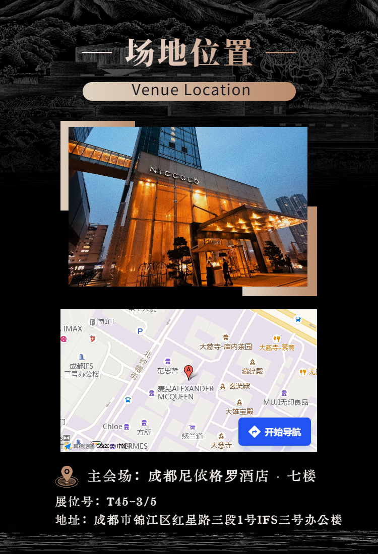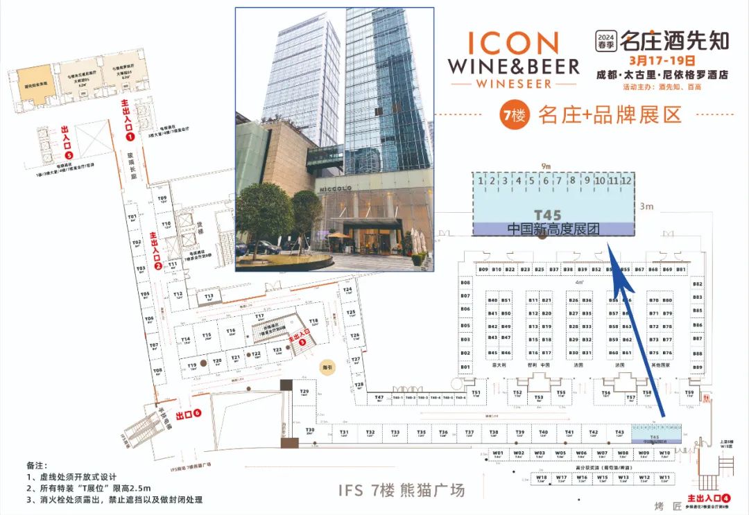 第110届全国糖酒商品交易会将于2024年3月15-22日在成都举行,曲孜卡1865酒庄的主场定于成都·太古里·尼依格罗酒店的名庄酒先知主题展,本场展位位于酒店七楼,展位号为T45-3/5,布展时间为2024年03月17-19日,共三天。