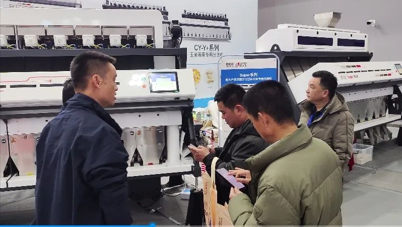 P-CV-Y+系列产品采用深度学习技术双核双引擎架构,并搭载行业内最先进的荧光识别技术,满足小麦、玉米加工分选需求。自去年上市推出后,在市场引起轰动,赢得了客户的一致好评。P-CV-Y+系列产品除了对玉米、小麦中的各类异色分选、形状分选、恶杂分选外,尤其针对玉米中的毒素分选、小麦中的芽麦分选,率先应用了引领行业的“紫外荧光分选”解决方案,有效的把玉米中的黄曲霉毒素控制在国家标准规定的20ug/KG,并把遭遇雨水天气而产生的芽麦分选出来,极大的提升了玉米、小麦的品质,进而给广大的玉米、小麦加工厂商创造了高效的价值。P-CV-Y+系列产品一机多用,可同时满足玉米、小麦的分选加工需求,产量高,单通道产量可达2-4吨/时。此款产品上市以来,市场占有率遥遥领先。此次博览会,客户在展会现场品鉴过此款产品后,当场签单,并表示立刻要把从产品带回去成为“赚钱利器”。未来,中科光电将持续提供专业化、系统化、最具商业价值的分选解决方案,助力粮食加工企业品质变革。下一站,3月16-17日,第四届中国(长春)中高端粮农产品展洽会,我们不见不散!