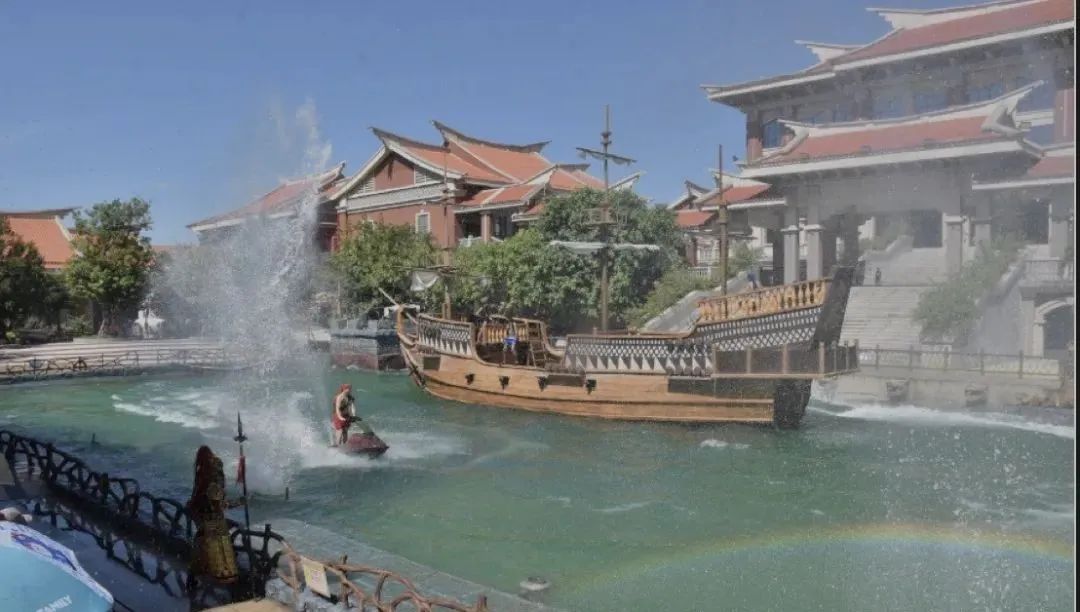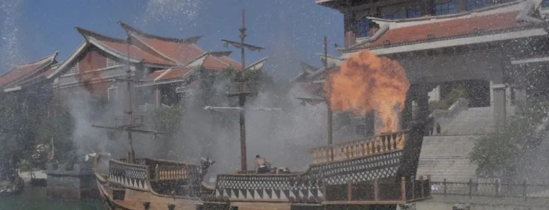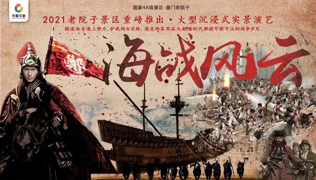 【观大型沉浸式室外实景演艺《海战风云》】,真刀真枪的大型沉浸式实景演艺,故事主线以明朝著名的“料罗湾海战”展开。20吨重可升降巨型战舰,爆炸水炮26门红衣大炮6门,32.3米高三面妈祖,获得研发机械装置专利2项。
