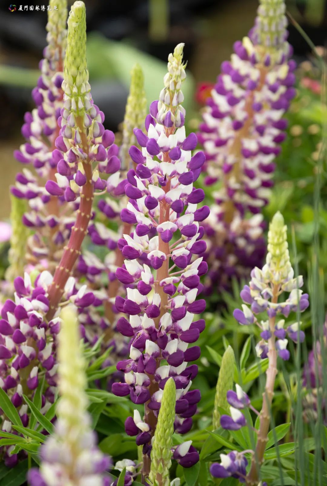 同时采用7万株葡萄风信子、洋水仙、百合等色彩鲜明的球根花卉,长花序类草本紫罗兰、飞燕草、羽扇豆等,搭配各种时令花卉,打造多处氛围花境。