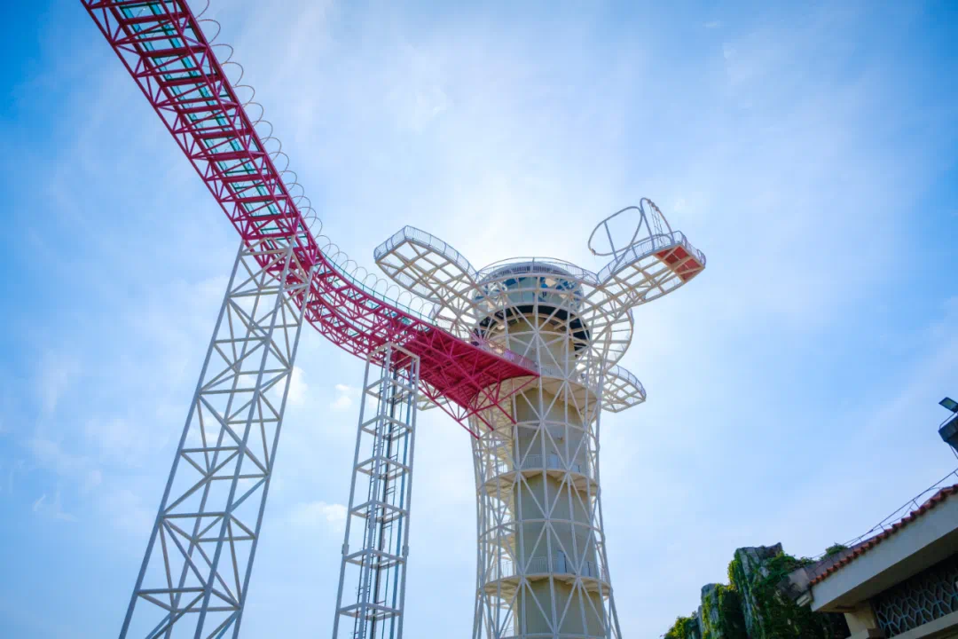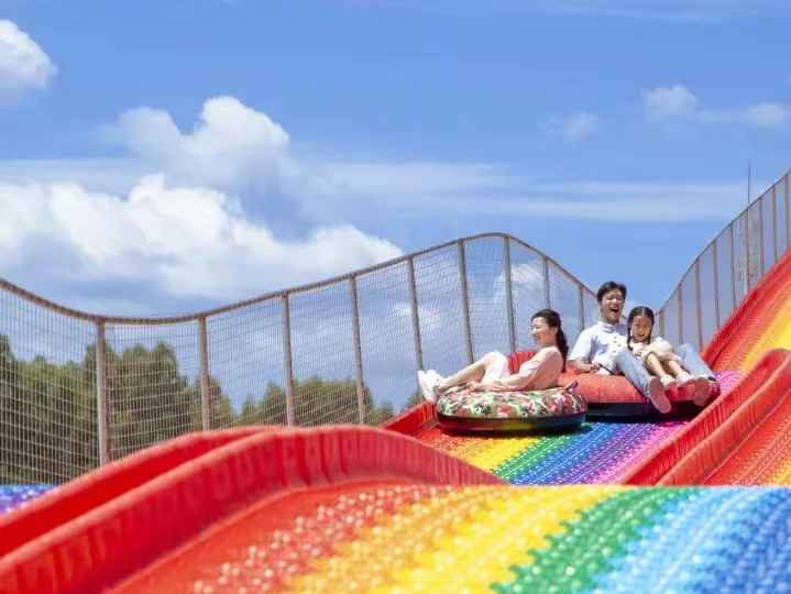 从彩虹滑道飞驰而下,仿佛穿梭于空中彩虹。