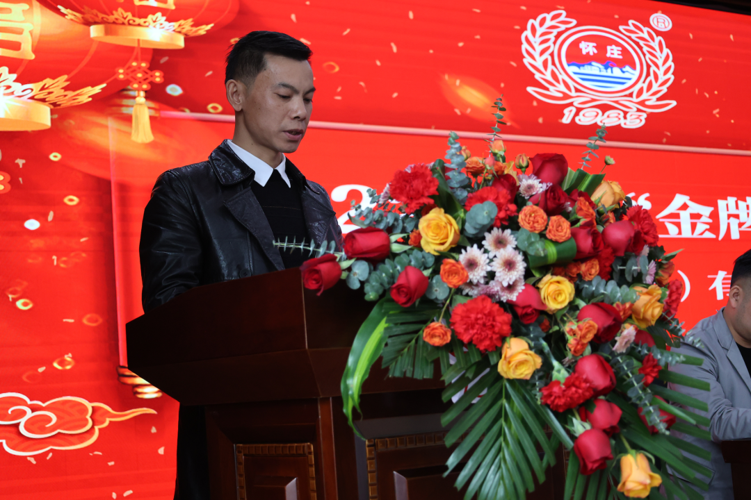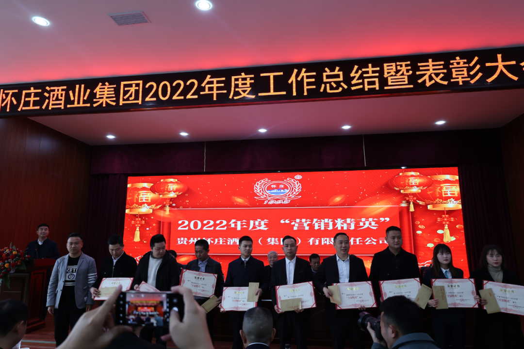 1月12日上午,怀庄酒业集团召开2022年度工作总结暨表彰大会。公司党委书记、董事长陈果;党委副书记、总经理陈启龙;公司党委副书记、副总经理、工会主席田云昌;公司党委委员、副总经理赵海;公司副总经理、销售总经理罗文献;公司党委委员、销售副总经理熊顺楷;公司副总陈启先、陈浪、陈元出席会议。销售公司副总经理胡益、徐尚权、刘浩洋、罗正超、龚林、卢大庆、张鹏、熊堂乾等200余名同事参加会议。陈启龙总经理代表公司经营班子从“坚持党建引领群团合力,构建优质企业文化;以高质量发展为统揽,优质开展生产经营;以优质服务为导向,努力提高服务水平;坚持以营销为龙头,各项工作聚焦销售;持续开展公益活动,切实履行社会责任”五个方面总结2022年工作,并从“持续发挥党建引领,铸牢怀庄文化底色;以高质量发展为统揽,推进生产经营升级;认认真真办好怀庄四十周年大庆”等三个方面就2023年工作开展进行安排部署。公司党委委员、副总经理赵海宣读表彰文件,大会对2022年在生产经营中表现突出的58名同志进行表彰。公司党委书记、董事长陈果,党委副书记、总经理陈启龙,党委委员、副总经理赵海,副总经理、销售总经理罗文献,党委委员、销售副总经理熊顺楷,副总经理陈启先、陈浪、陈元为荣获怀庄集团“金牌职工”刘红、王运贵、徐峰同志,荣获“优秀职工”敖正群等同志,荣获“营销精英”何力等同志颁发奖状、红包、礼品酒。公司副总经理、茅台基地支部书记陈浪为营销精英颁奖。公司副总经理、坛厂基地支部书记陈元为营销精英颁奖。公司法人总经理陈启龙,工会法人田云昌代表工会签订集体协商合同。 随后,怀庄集团党委书记、董事长陈果致2023年新年贺词,陈果董事长向关心帮助怀庄发展的市委市政府各级各部门领导表示由衷的敬意,向全国各地的合作伙伴表示真诚的感谢,肯定了全体怀庄人的辛苦与付出。陈果董事长从“空谈无用,实干兴企。坚定信心,坚守定力搞发展。隆重办好怀庄四十周年大庆”三个方面,对过去一年的工作表示了肯定,并就来工作提出重要要求。最后,陈果董事长代表集团公司祝大家春节愉快,阖家欢乐,前途似锦,大吉大利。公司党委副书记、副总经理、工会主席田云昌主持大会。贵州怀庄酒业集团公司办公室 2022年1月12日 编辑