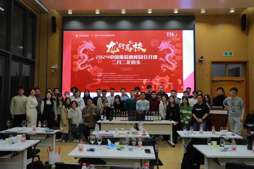 首堂“龙行高校”2024中国葡萄酒校园公开课于2024年3月11日开讲,龍闕葡萄酒·府走进清华、北大等十所大学。