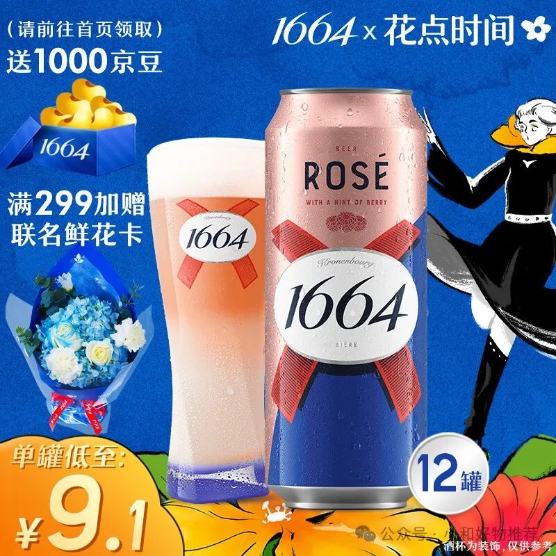 1664桃红啤酒是一款非常受欢迎的啤酒,它的口感淡淡的甜味,有蛮浓厚的啤酒花的味道,但是酒精味较轻,口感不错1。这款啤酒是你和朋友聚会的时候的不二之选,无论是烧烤还是火锅,都能搭配得恰到好处。