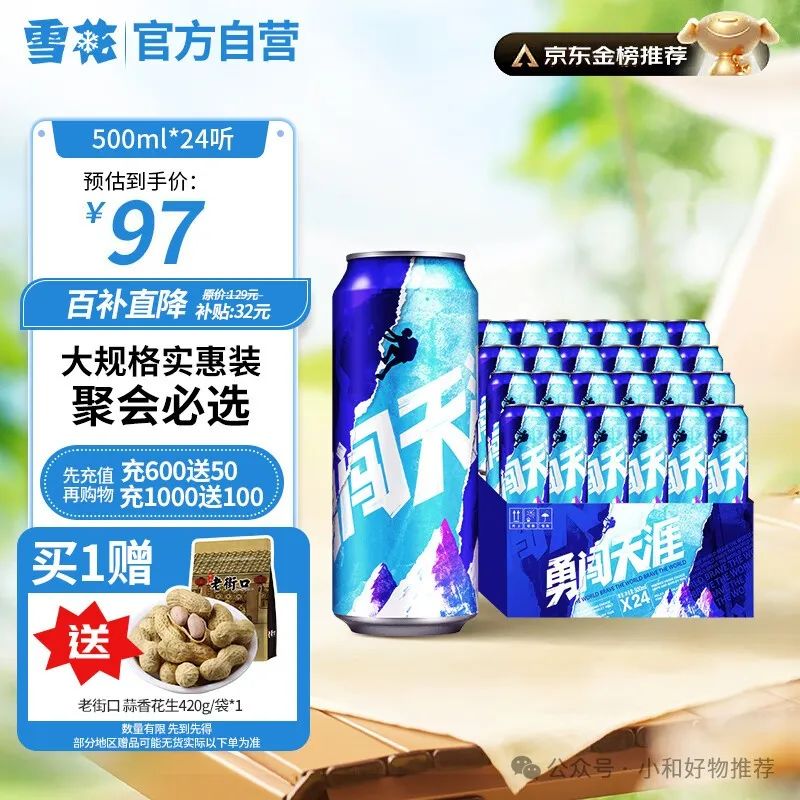 这款雪花啤酒(Snowbeer)勇闯天涯是个大规格实惠装,一次买就有500ml24听,非常适合家庭聚会或者朋友聚餐时候喝。口感醇厚,泡沫丰富,是你享受生活的好选择。----雪花啤酒(Snowbeer) 勇闯天涯 500ml24听 大规格实惠装 女神送礼1