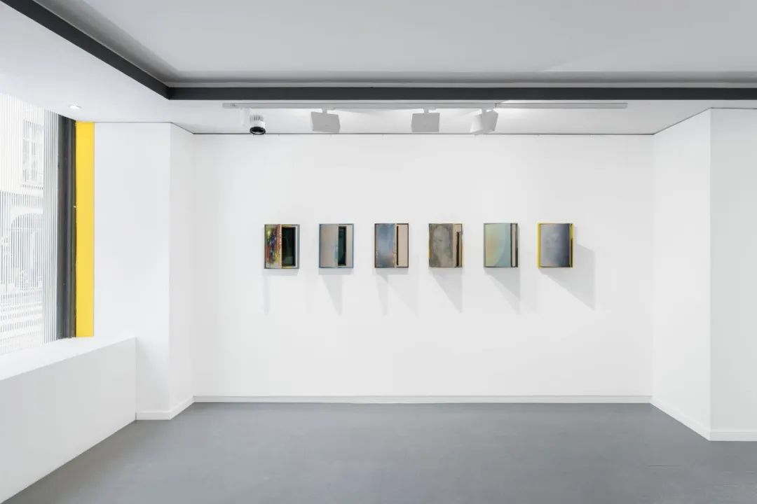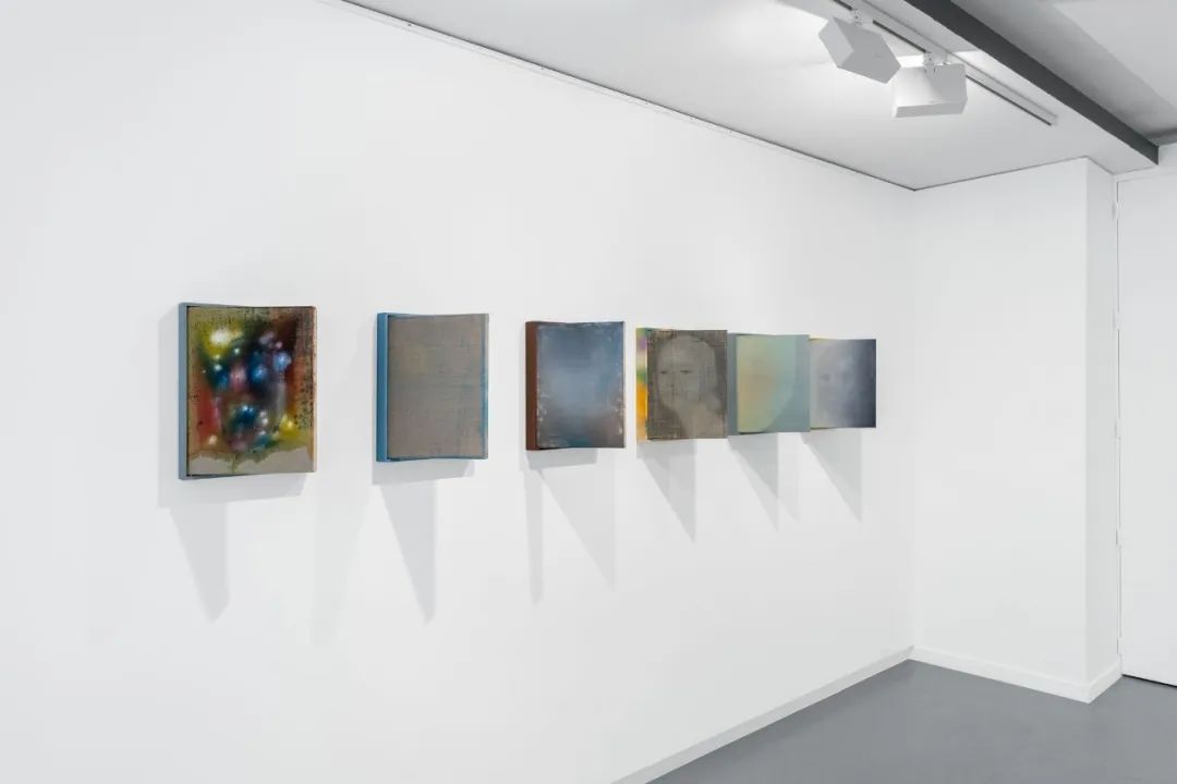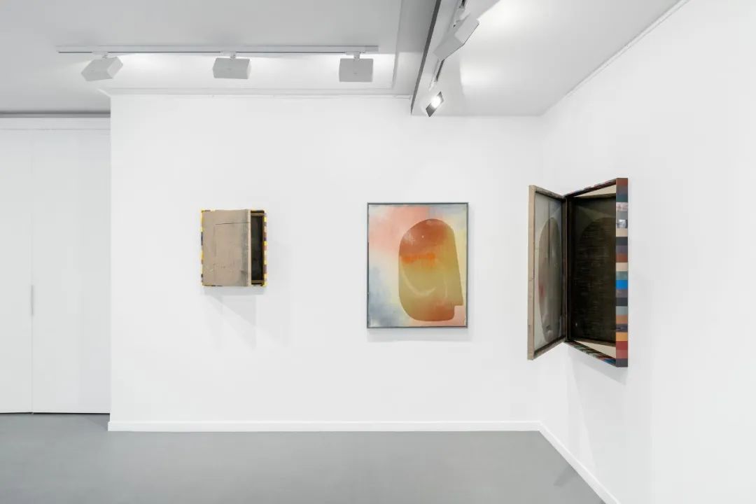 比泽尔的场地特定绘画将画廊的外立面转变为外部世界及内省、吸收、扩散的内部空间之间的门槛。在这里,一切都不如表面看起来那样清晰明确。走入画廊,观众将遇到一系列尺寸较小的亲密抽象绘画:色彩斑斓的彩色场域镶嵌在带铰链的特制艺术家画框中。每件作品的背面都包含一个看似没有关联的画作,通过镶嵌于画框背后的镜子映射出来。这些幽灵般的面孔、抽象形式和精致物件营造出一种沉浸式观展体验,一个无法完全被掌握的图像被时间层层扩散。