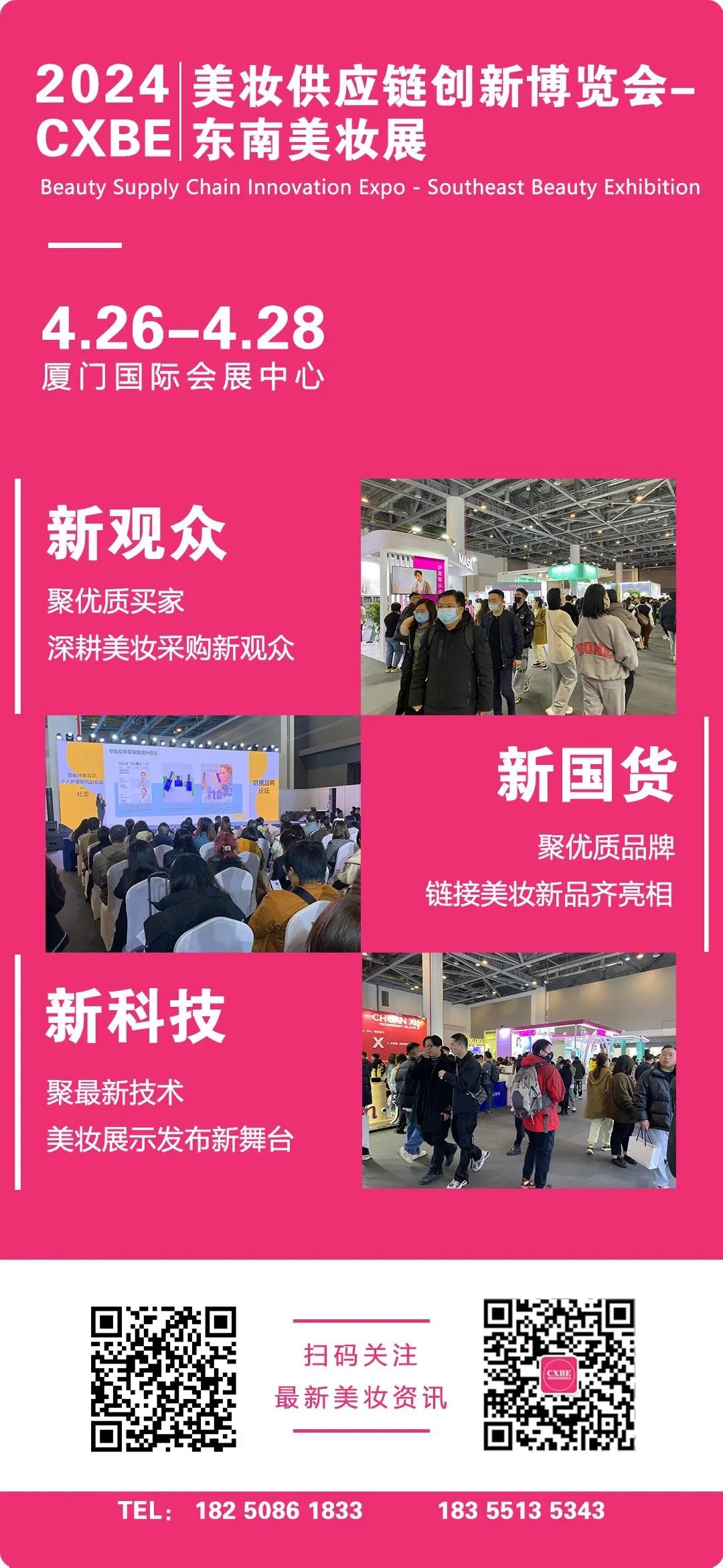 3月10-12日,为期三天的广州美博会在琶洲展馆圆满开展,期间CXBE美妆供应链创新展组委会一行工作人员到达展会现场,主要围绕厦门美妆供应链博览会供需数据宣传对接,走访优质供应商,对接美妆供应链及日化技术产业(涵盖集OEM/ODM代工、化妆品及彩妆、美妆工具、新国货品牌、高端包材商、贸易公司,电商平台,线上TP、私域渠道、社区社团,MCN机构、经销批发商,零售商等日化线上下游产业链衔接),配对优质精准买家为主。广州美博会作为行业展极具代表性的大展之一,现场汇聚了行业诸多知名品牌企业,上下游供应链企业,在届时3天的现场推介中,组委会工作人员对现场每家企业进行了CXBE美妆供应链创新展会邀请函及参会门票派发和展会详情介绍,先后拜访了300多家老客户企业,7家专业媒体。通过深入交流与洽谈,众多行业企业都对厦门乃至整个东南国际市场表示了认可和支持,对2024CXBE美妆供应链创新展-东南美妆展的办展理念,服务方向,买家匹配,行业战略等招商专业度也给予了充分的肯定。本次博览会推介期间,据不完全统计组委会共与76家行业品牌企业达成参展意向,现场预订展示面积约900多平,与3家行业媒体达成深度产业宣传合作,2024CXBE美妆供应链创新博览会-东南美妆展与您携手,共探美妆技术行业新方向探索新赛道,开启行业发展新征程,美妆供应链行业同仁敬请期待!