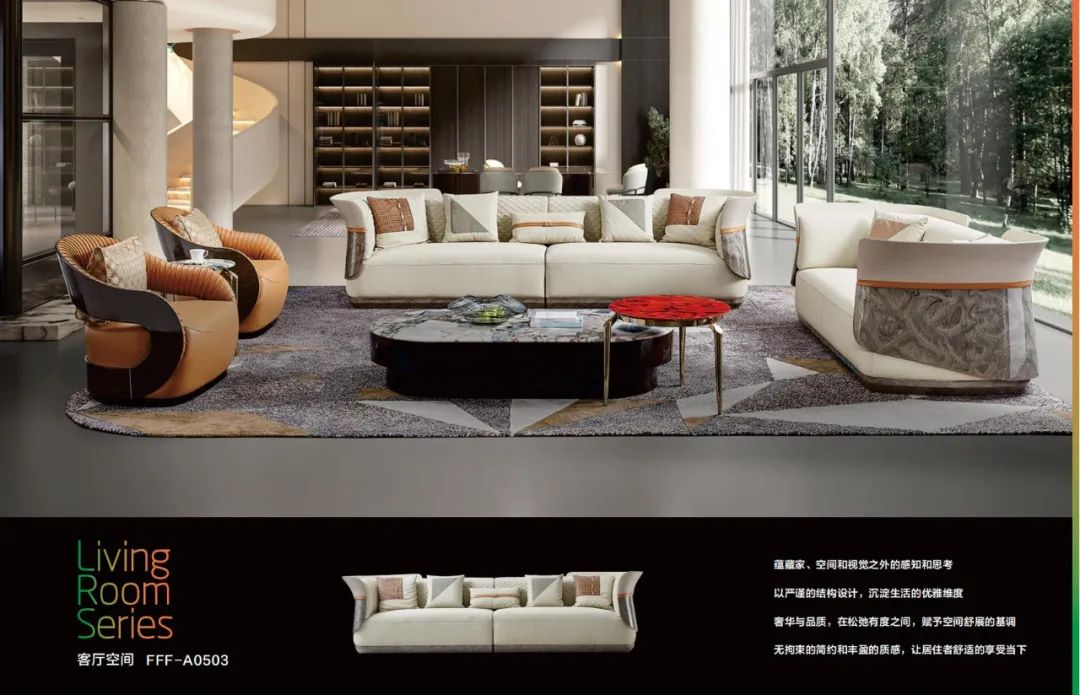 F.F.F.意式新奢全屋家居系列——以国际级品质标准进行创作,多元材质结合精湛工艺,兼顾美学,功能、品质和舒适体验的家居产品,以设计感、现代感和舒适感打开高品质生活方式。