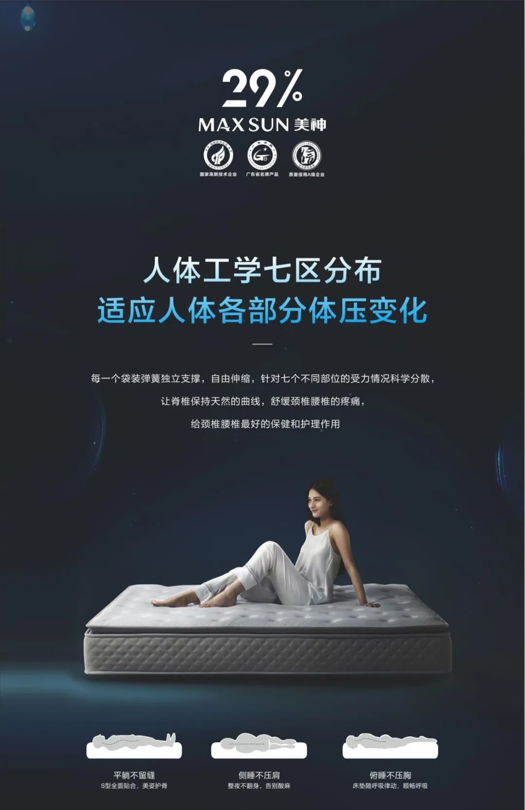 美神·29%系列床垫——质感深睡系列!源自于意大利设计风格,提供极致深度睡眠体验!从容享受,舒适度过人生1/3的睡眠时间。