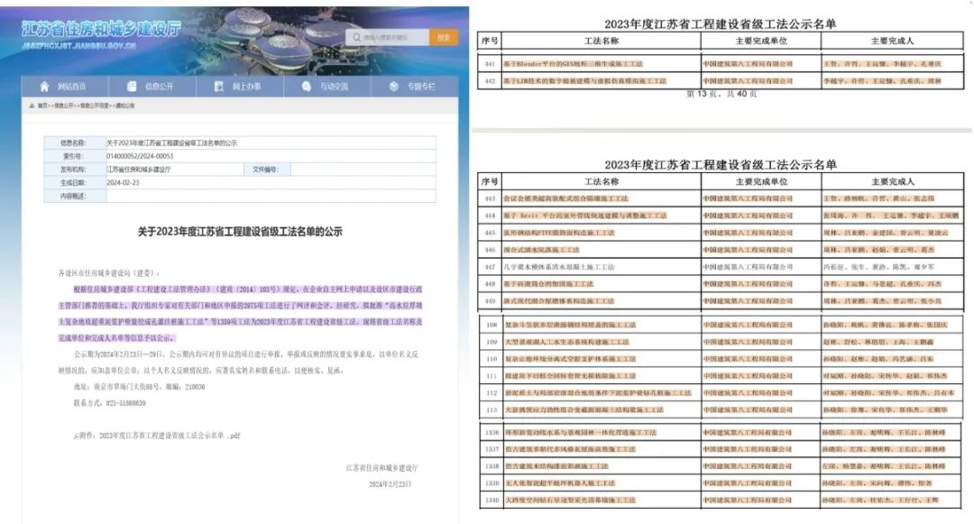 近日,江苏省住房和城乡建设厅公布了2023年度江苏省省级工法名单,中建八局文旅博览公司获批“复杂斗笠状多层曲面钢结构屋盖的施工工法”,“大型景观湖人工水生态系统构建施工工法”和“复杂山地环境分离式空腔支护体系施工工法”等19项工法,为八局的文旅业务发展提供了优秀的科技创新成果支撑。