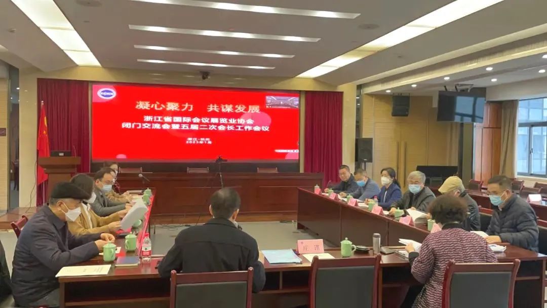 1月13日下午,浙江省国际会展行业协会闭门交流会暨五届二次会长工作会议在杭州召开。省商务厅服贸处处长庄谨出席线下会议。我协会秘书长线上参会。