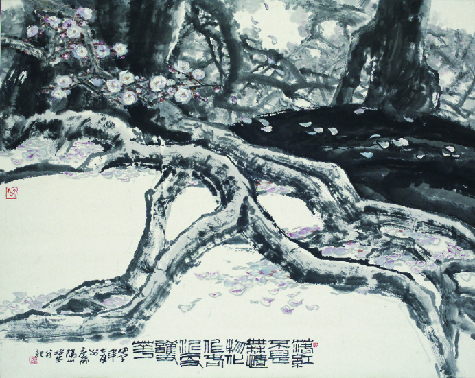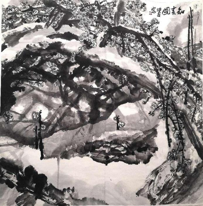 《一树独先天下春》,1994年,150cm×162cm,宣纸水墨,广东美术馆藏