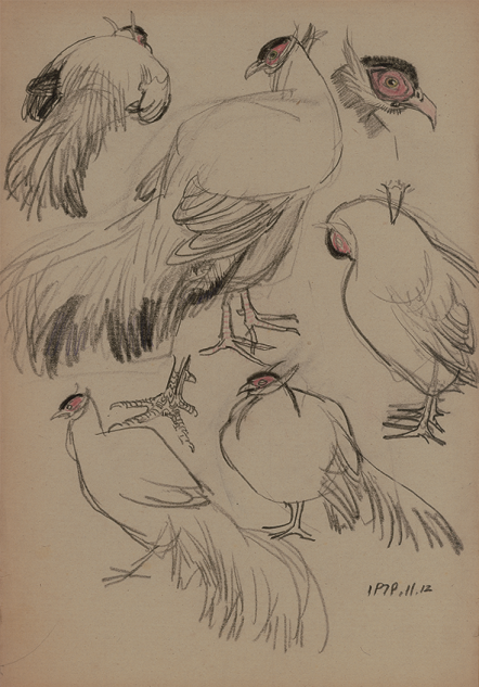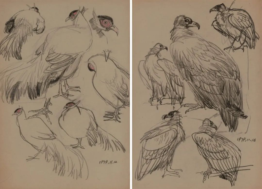 《鸟类写生》,1979年,38.5cm×27cm,纸本