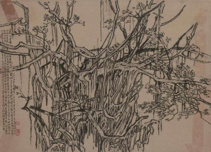 在其他领域,先生年少弱冠时即有工笔人物画《庙会》于郑州市美展获奖,并入选河南省美展。求学广美时,恰逢新中国山水画面临再一次的转型挑战,他秉承了岭南画派以写生切入现实的视角,同时采用新的水墨语言进行改造,创作出一系列沉郁、厚重的山水写生与创作。之后由于学院教学需求,才转向专研大写意花鸟。值得一提的是,自幼以来如同日课般的书法和篆刻创作,既成为张治安改造笔墨、自成一格的视觉经验,同时也成为他晚年重要的创作方式。如其晚年自号“天放翁”所彰显的,亦书亦画,以书入画,画意成书。尽管先生以墨梅名世,但其艺术视野之开放,文化积淀之深厚,都证明了中国画并不是单纯的视觉艺术,其背后需要更为广阔的文化背景支撑。