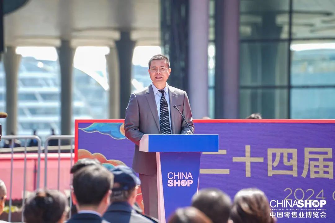 中国连锁经营协会会长彭建真为展会做开幕致辞,他表示,过去一年整体消费市场态势向好,一些新的机会、新的模式也正在零售市场生根、发芽、成长。比如会员店、折扣店、精品店的批量崛起,比如即时零售的快速增长,都给零售企业和品牌商带来了新的发展。传统的商超大卖场也在积极转型求变,对卖场购物环境、货品陈列,尤其是核心商品选品等进行优化改革,来赢取消费者的青睐。彭建真会长指出,CHINASHOP走到今天,业已二十四届,在每一轮零售浪潮更迭,推动零售行业发展与革新中一直扮演着极为重要的角色。今年的CHINASHOP继续以集合最新最全的零售技术、设施设备、商品解决方案大平台的形象亮相,邀约了超过800家零售解决方案提供商参展,除了展示兼顾创新与实践的各类数字化技术、供应链管理、门店设计、展示道具、环保节能设备外,还新增了很多地方特色商品、精选进口商品在内的商品组团参展,为零售商们实现了一站式源头直采、优品直采。与此同时,彭建真会长也建议,不管是零售商、品牌商,还是服务商、供应商,在越来越开放的今天也要积极地“走出去引进来”,让中外零售合作交流更上一层楼。中国连锁经营协会副会长兼秘书长王洪涛发布倡议