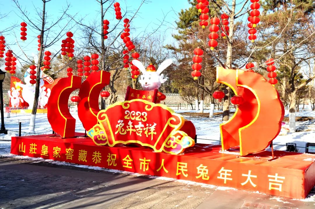 灯会灯展是承德人的“年味”,德汇门外迎水坝灯会展区以及市中心广场一组组氛围花灯作品熠熠生辉,印有“山庄皇家窖藏恭祝全市人民兔年大吉”和板城酒业“勇毅前行 䂽历奋进”的大型花灯为熙熙攘攘的行人带来了新春的喜乐和祝福!