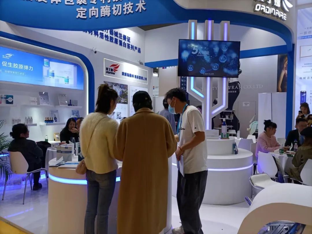 爱丁娜携手新品【胶原贴敷料】亮相第63届广州美博会,多方合作伙伴到展台前驻足交流,以产品适应症、市场经验、产品渠道及合作模式等话题进行现场探讨,对爱丁娜新品及公司市场发展展现出浓厚的兴趣。