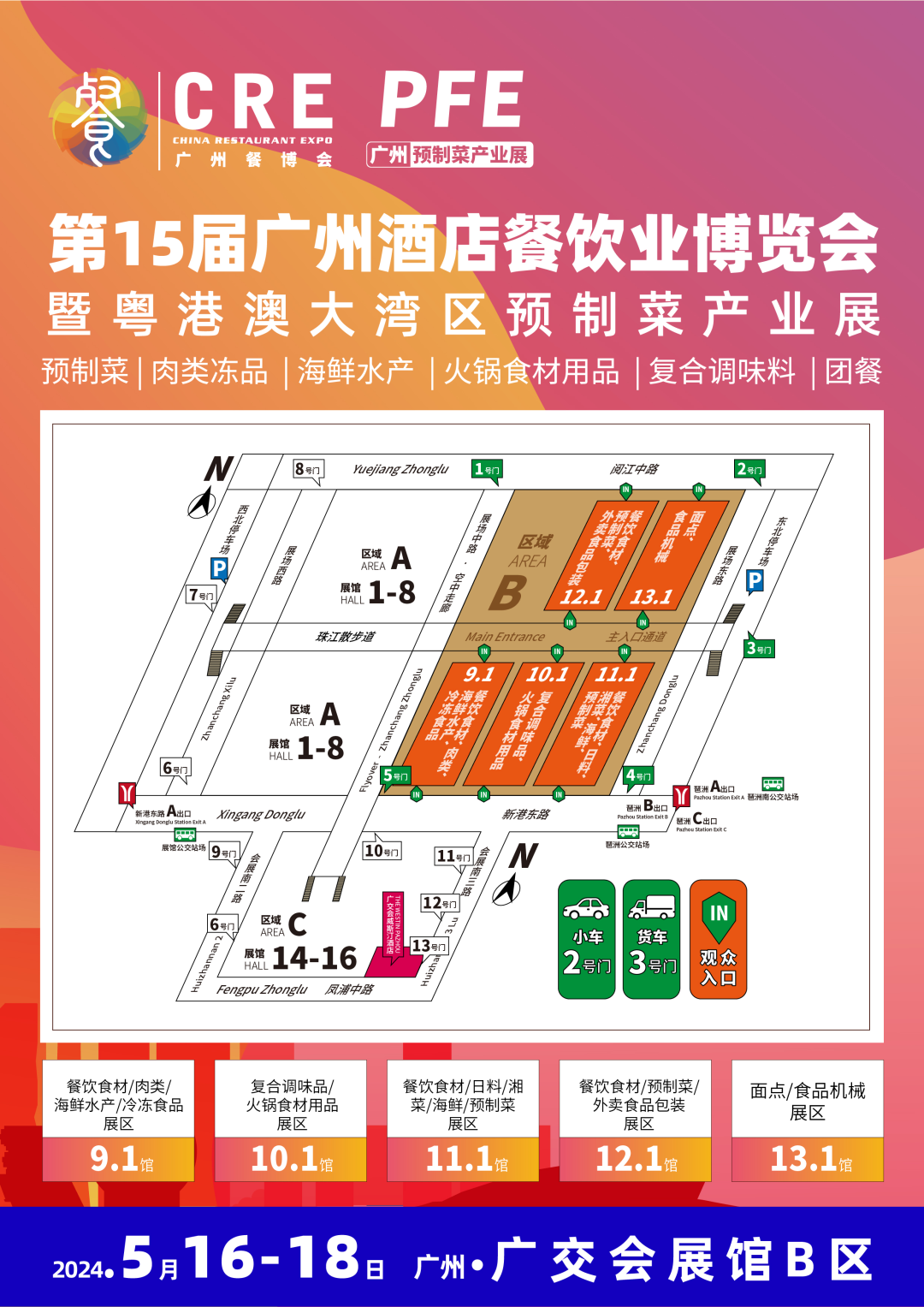 相聚餐饮业风向标大展——CRE·2024第15届广州酒店餐饮业博览会暨大湾区餐饮预制菜产业展览会(简称:第15 CRE广州餐博会)将于2024年5月16-18日,在广州·广交会展馆B区一楼举办(5馆全开)。
