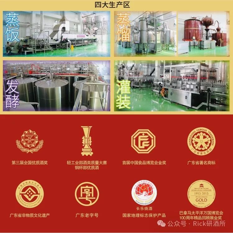 长乐烧坚守古法酿艺,坚持科技创新,土灶车间和自动化生产车间并重,蒸饭、发酵、蒸馏、灌装四大生产区齐驱,拥有自主知识产权属国内先进、省内首创的米香型白酒机械生产线和传统的米香型白酒土法生产线,年生产白酒规模10000吨,新建仓库投入使用后,全厂储酒能力将达到20000吨。