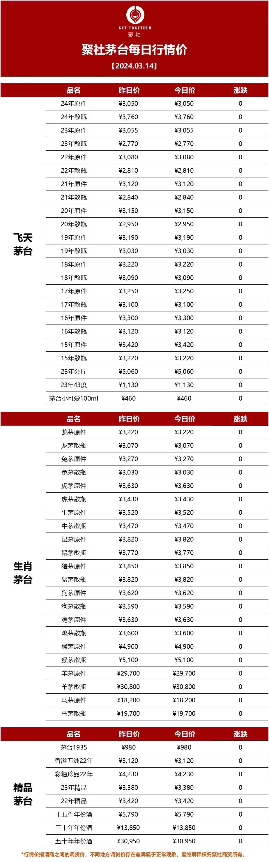聚社名酒行情:3月14日茅台行情价