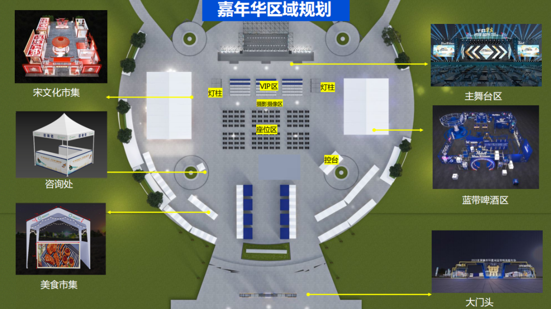 活动主舞台、蓝带啤酒区、宋文化市集、美食市集正在密锣紧鼓的搭建中。作为此次嘉年华的主要会场,东门广场将迎来无数精彩纷呈的活动,必将燃爆夏日激情。