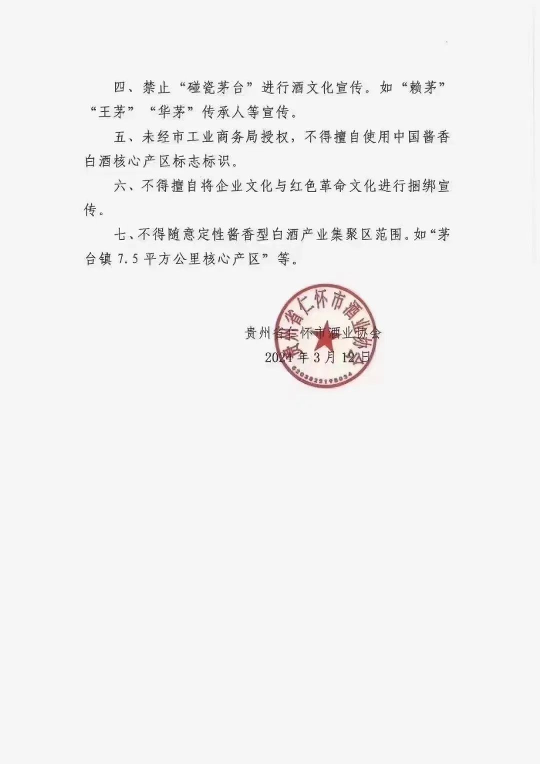 四、禁止“碰瓷茅台”进行酒文化宣传。如“赖茅”“王茅” “华茅”传承人等宣传。