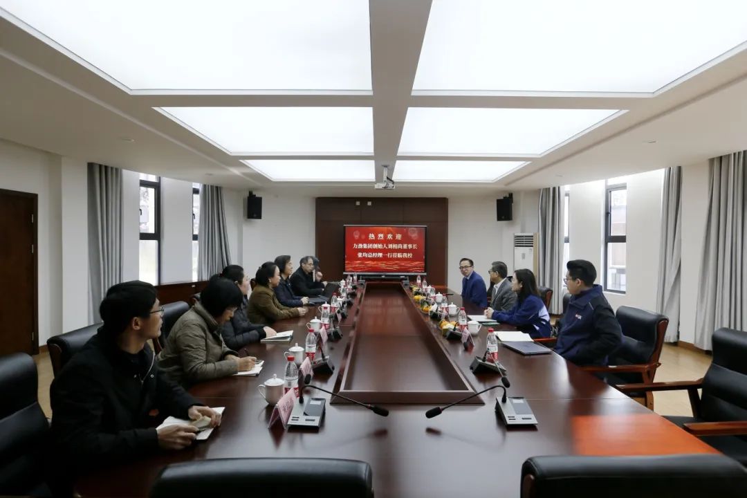 袁校对刘董一行的到来表示热烈欢迎,并就办学情况进行了简要介绍。袁校表示,在政府大力推进产教融合,全面加强高素养劳动者队伍建设的良好职业教育发展形势下,共同探讨如何培育高技能人才,开展校企产教融合深度合作具有深远意义。弘途与力劲有深厚的合作基础,校企互补,各取所长,在聚焦产业链高技能人才培养、制定“两高一新”人才培养标准、研发精品课程、共建产教融合实训基地等方面有广阔的合作空间。袁校希望通过双牌交融共建等多举措打造多个具有社会影响力的产校协同育人品牌。校企联合育人,培养众多具有针对性的、实用复合型高素养技能人才,力争成为宁波市“五个一批”产教融合工程建设的先行者和优等生。