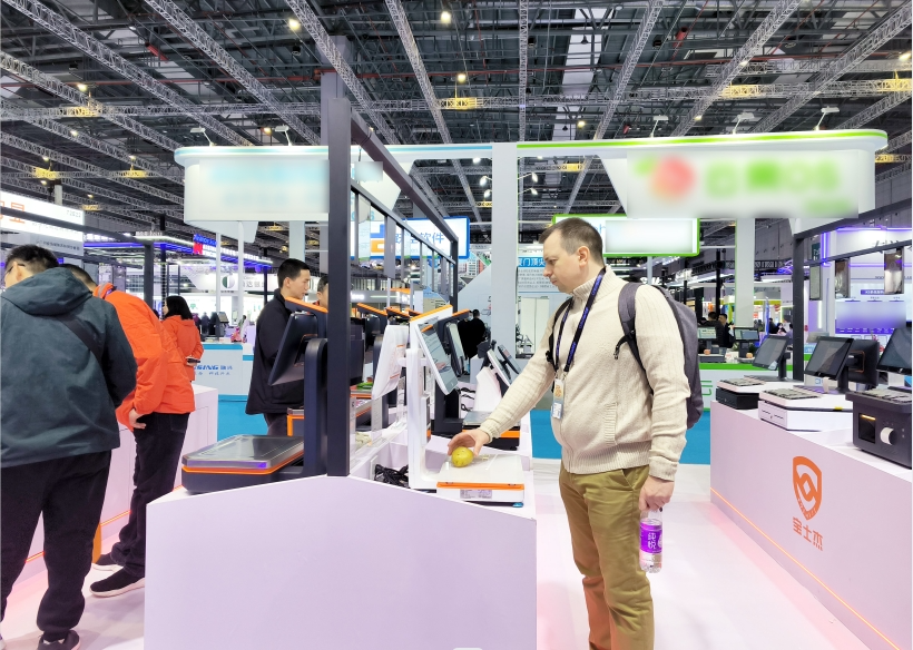 海外客商操作宝士杰AI智能收银秤