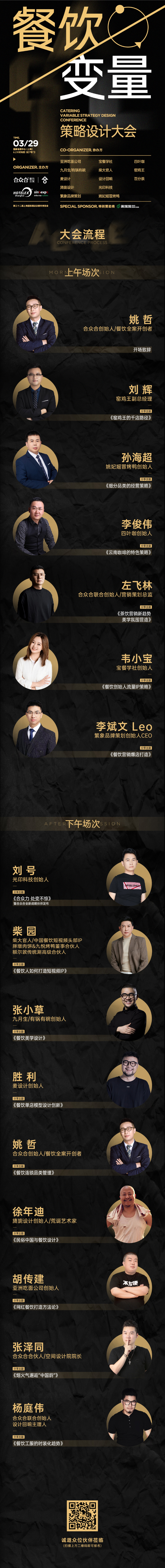 《深耕地域发展·成就区域为王》第三届子然设计餐饮峰会,深挖餐饮品牌真实痛点,总结市场区域王者成功方法,从餐饮老板到品牌落地成为王者的方向共研。现有区域王者餐饮老板将分享自己是如何来深耕地域发展、不断积累经验和应对当下布局,让更多有潜力的餐饮人一起成长,赋能思想盛宴和一对一讨论。秉承着一定要带着问题来,解决好问题回去的原则,加入“区域为王”组织共挖、共研、共创、共荣的会议价值,诚邀有潜力和认同的餐饮人一起加入“区域为王”组织,共商区域发展大计!