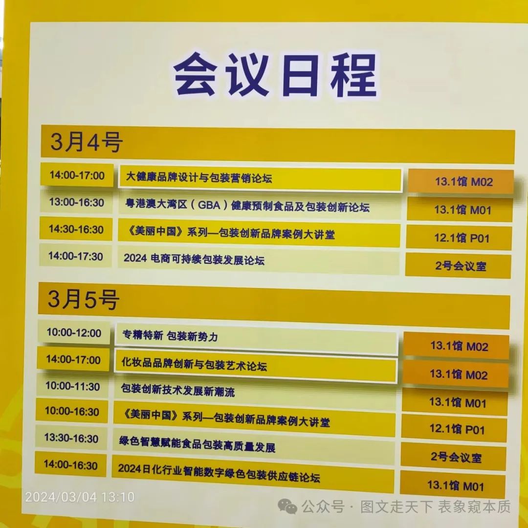 (会议日程)作为包装行业的标杆展览会,2024年第30届Sino-Pack包装展,不仅设置有熠熠生辉备受瞩目的各大专题展区,还精心策划了20余场高峰论坛、研讨会及新品首发活动。观众在逛展的同时,便能着手行业的深度洞察和开展丰富的交流学习,从中发掘无限商机,共同推动包装行业迈向更加辉煌的未来。