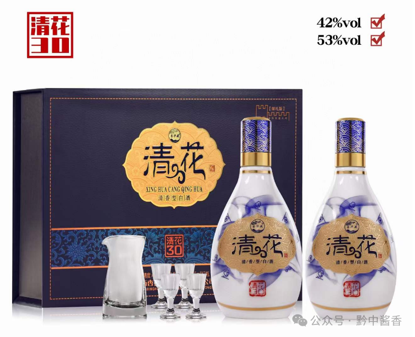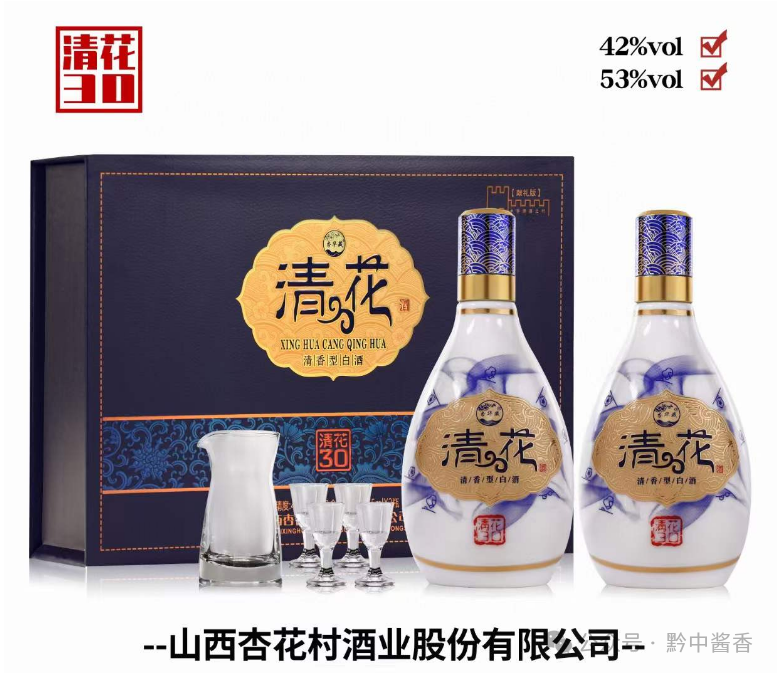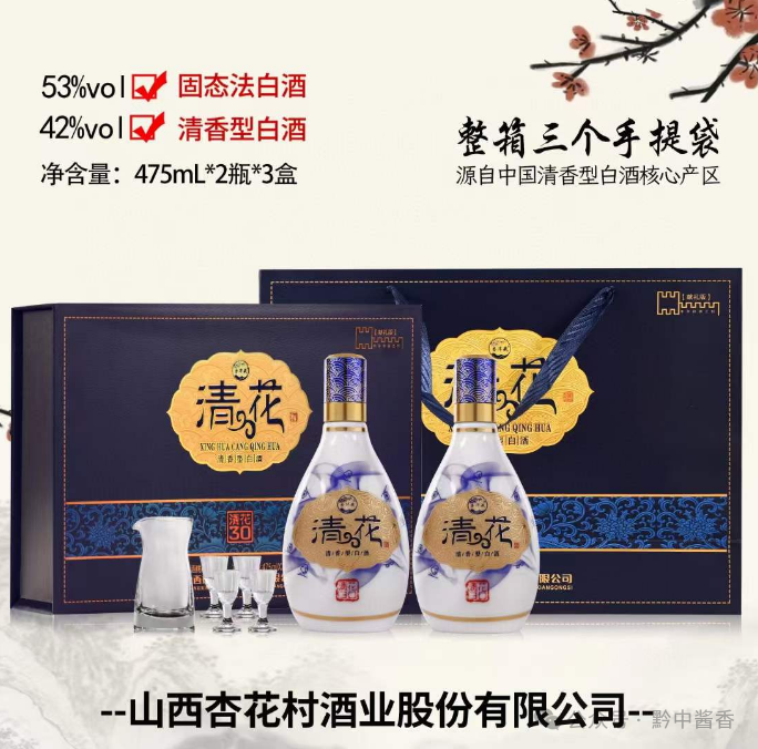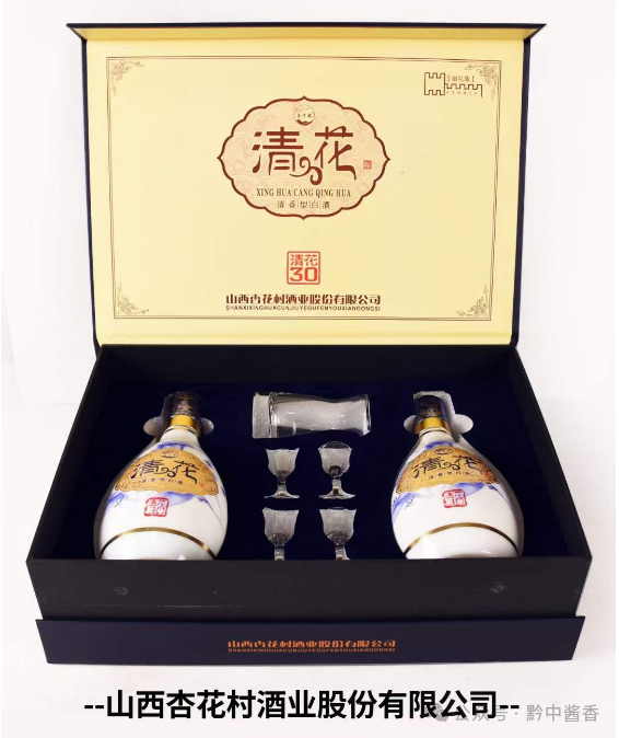杏花村酒业股份双礼盒清花全新升级 礼盒整体加大6公分 每盒加一套分酒器 四个小酒杯,加量不加价,送礼更称心