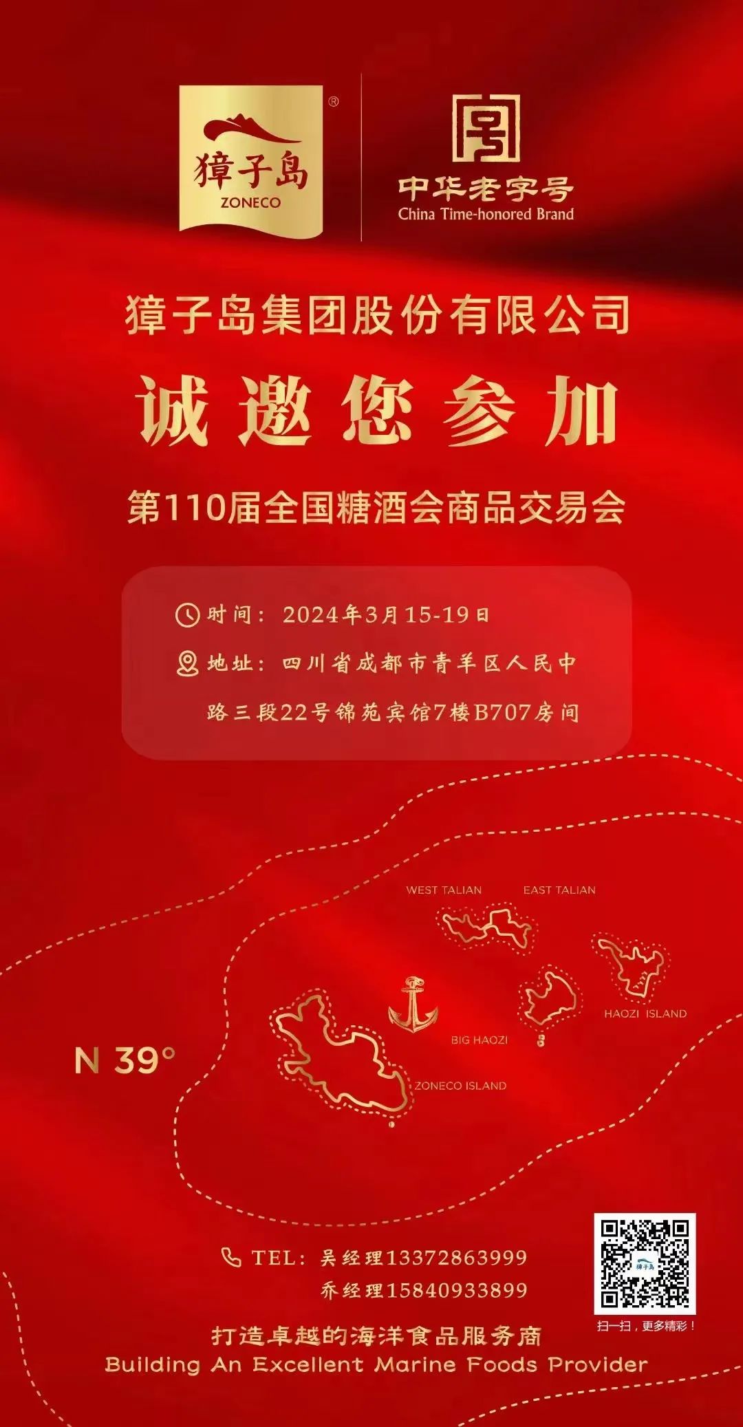 2024年3月15日至19日,獐子岛集团将携海洋休闲食品亮相成都锦苑宾馆7楼B707室,届时诚邀您的莅临。