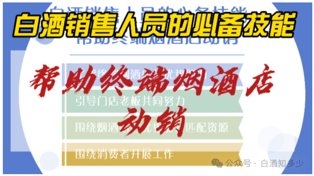 白酒销售人员在帮助终端烟酒店动销的过程中,需要综合运用多种策略,需要销售人员不断学习和提升自己的专业素养和沟通能力,适应竞争日益激烈的市场环境。