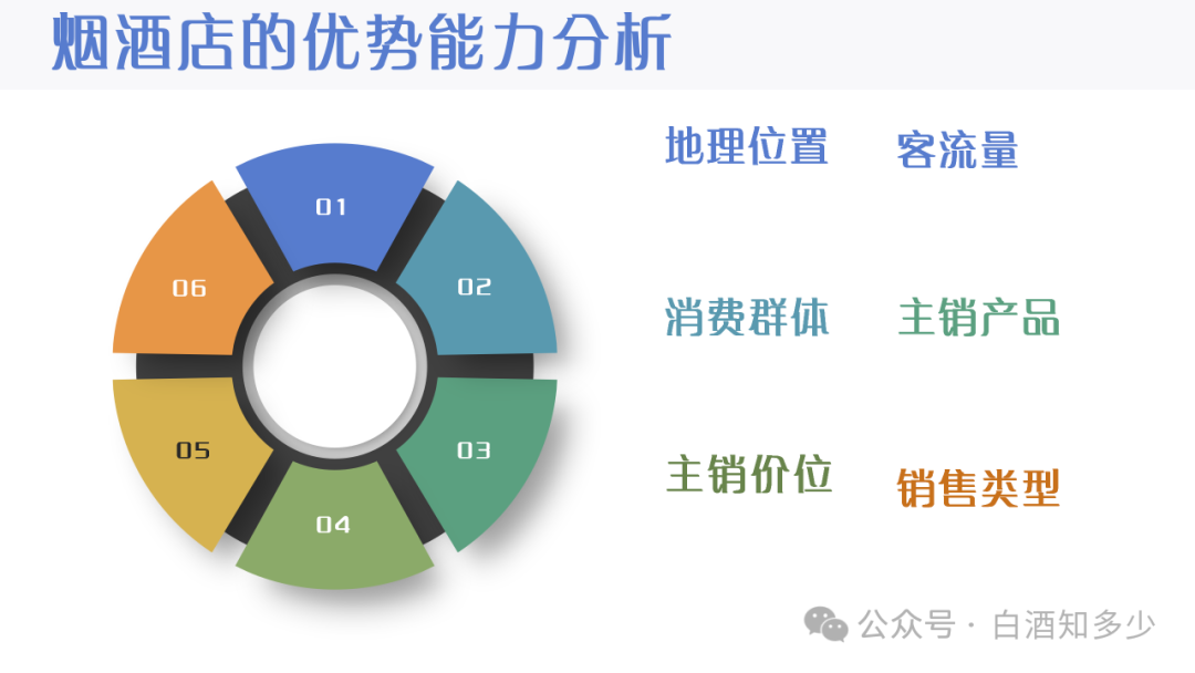 了解烟酒店的地理位置、客流量、主要消费群体、主销产品、主销价位,重点确认烟酒店的销售类型,如零售批发、企业团购、宴席,不同销售类型的烟酒店,动销方式上也存在很大差异。