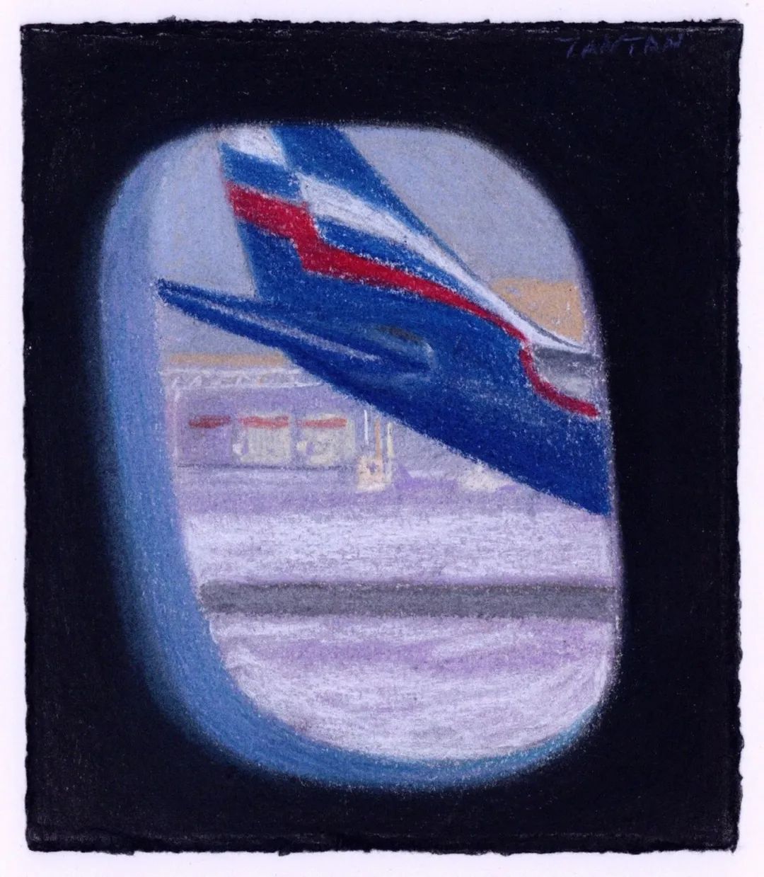 《降落谢列梅捷沃机场之二》,纸本色粉,