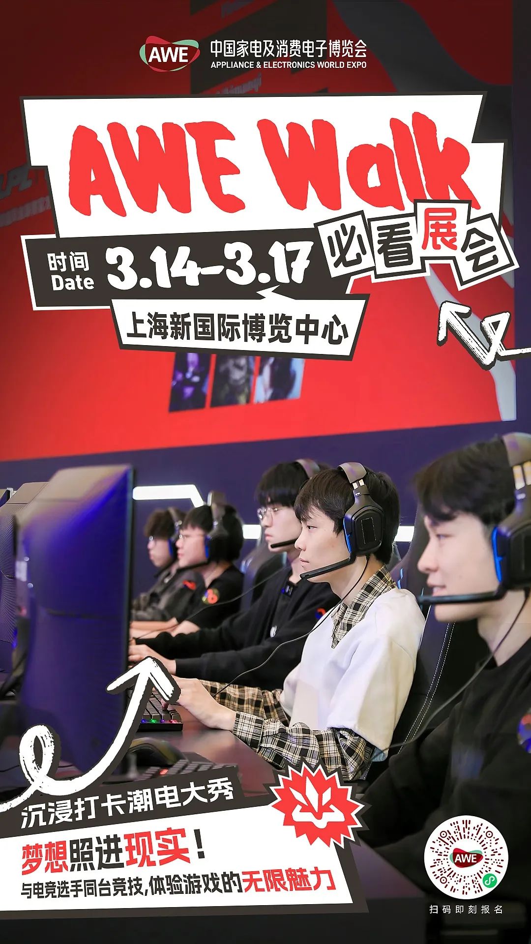 电竞热潮来袭,AWE邀你共赴游戏盛宴!这里有最新的游戏设备、最炫的电竞舞台,还有电竞大神现场竞技,让你热血沸腾,不容错过!02.