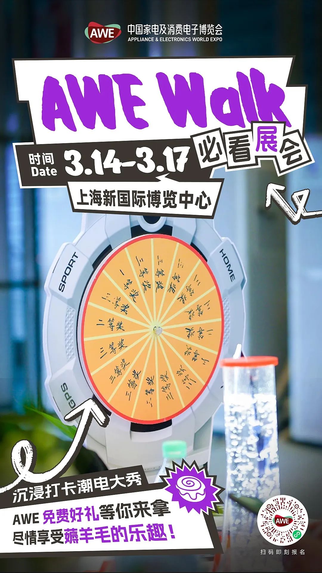 羊毛党们注意啦!AWE为你准备了丰厚的优惠和福利,让你逛展拿不停!快来现场领取你的专属礼物吧!