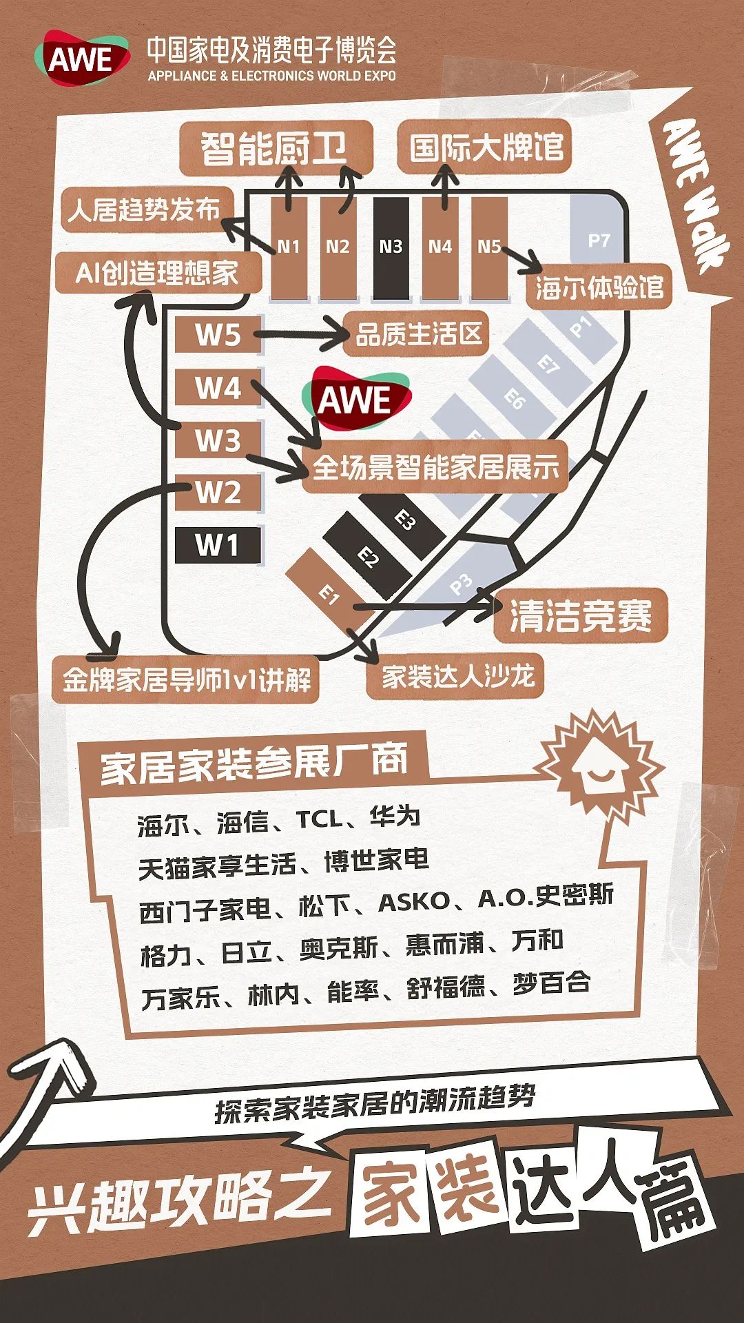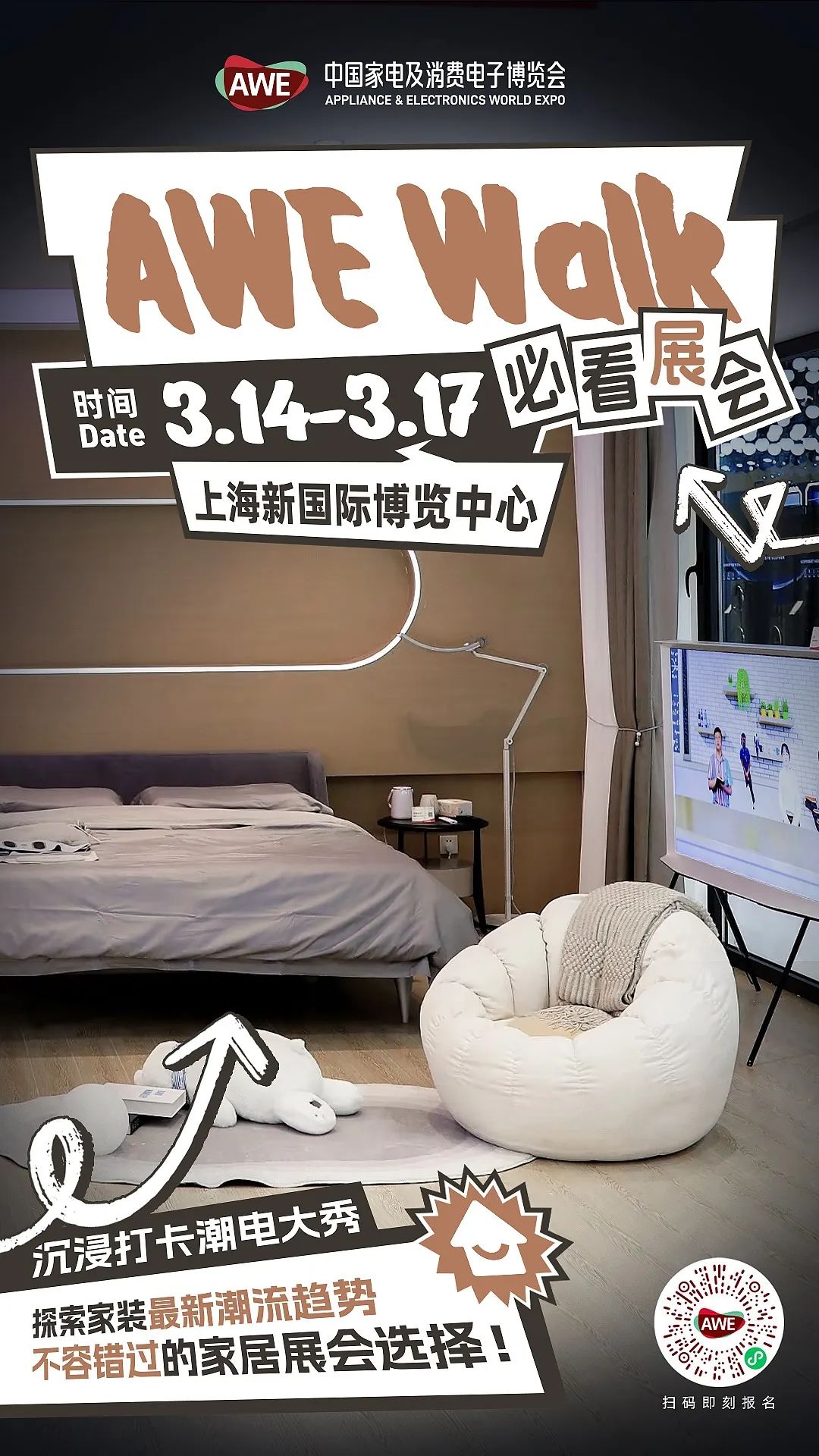 AWE Walk以八大兴趣圈层为核心,无论您是羊毛党、电竞游戏达人,还是科技数码爱好者,亦或是美食家、时尚潮人、家居家装达人,都能在这里找到属于自己的乐趣和惊喜!快来加入AWE2024,一起开启这场逛展的奇妙冒险吧!01.