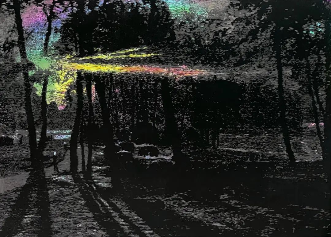 版画的魅力,恰如生活中的无数不经意瞬间,蕴藏着无限可能。生活中的美好事物是由一系列小小的、被忽略的瞬间组成的。版画艺术的过程,便是一场介于可控与不可控之间的精妙舞蹈。每一次刀痕划过木板,每一次墨迹触碰纸面,都是一次对偶然性的拥抱,让每一次创作都充满了意外的惊喜。这些不经意的印痕,正是生命肌理的缩影,记录着我世界互动的痕迹。