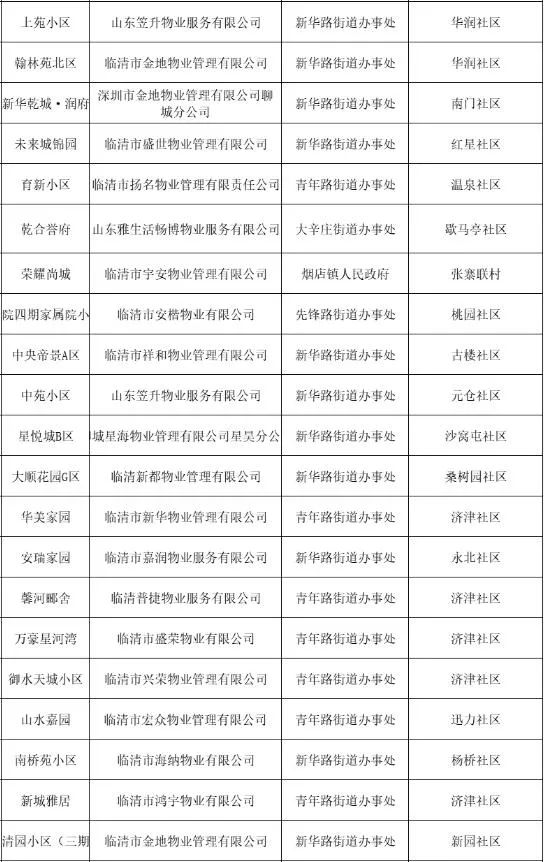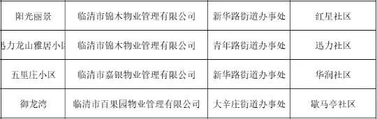 服务质量综合评价“黑榜”小区名单(临清)