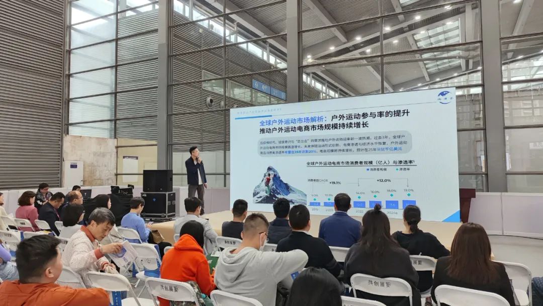 下午,跨津荟市场VP盛庆铭继续介绍跨津荟的长期规划,并结合行业报告深入分析了户外运动品类的海外市场需求,他认为做好产品数据分析是产业带商家转型跨境电商的关键。