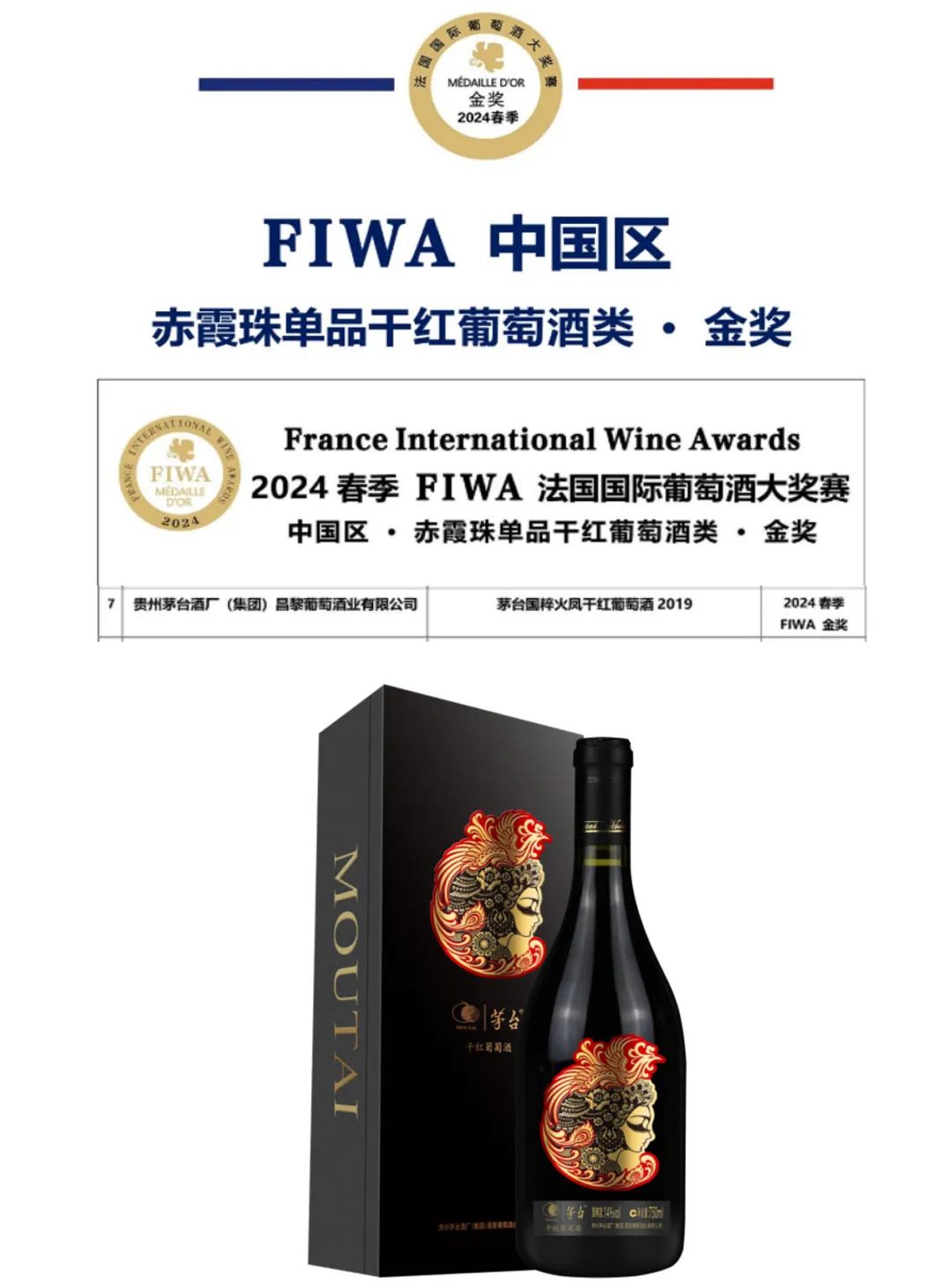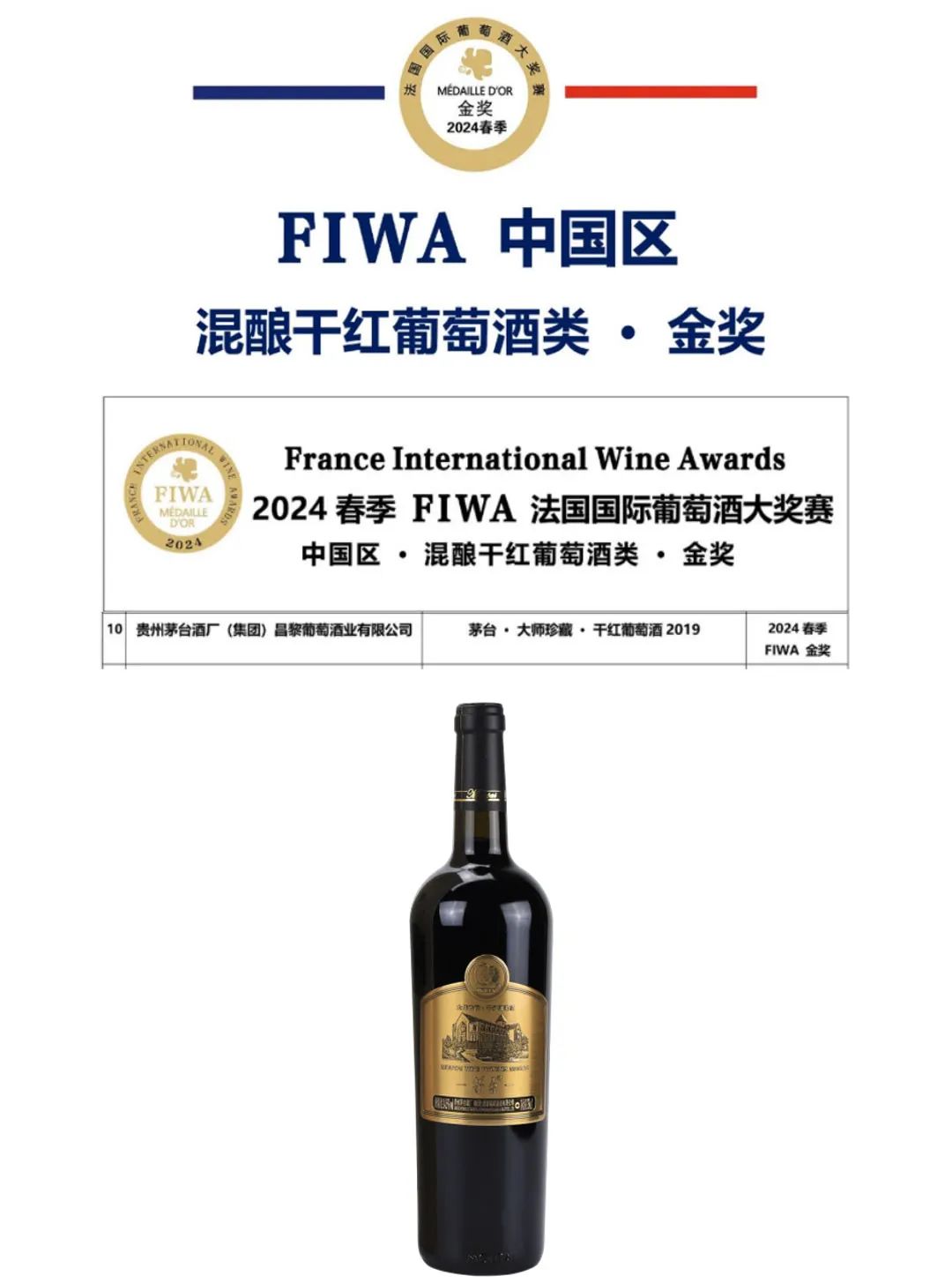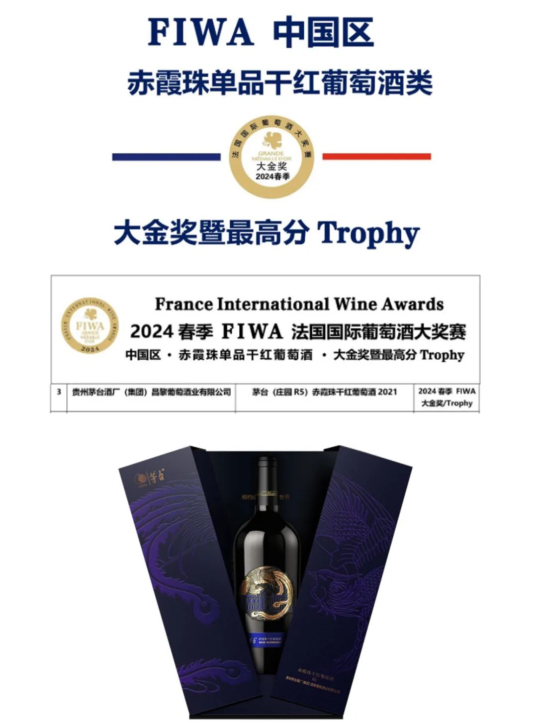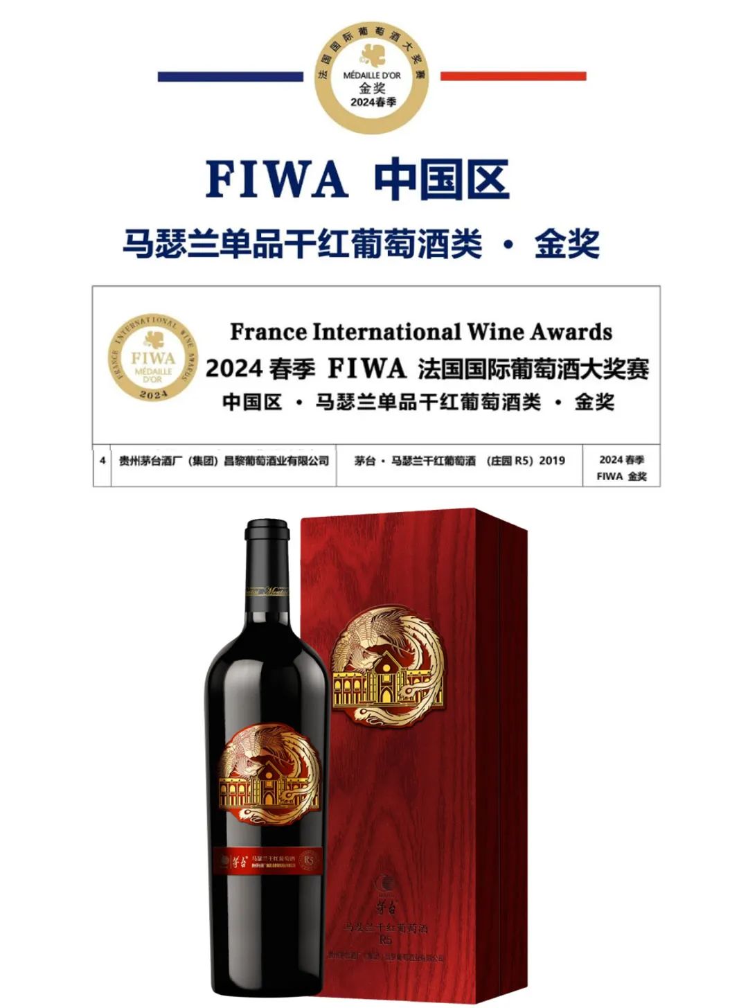 在2024春季FIWA法国国际葡萄酒大奖赛,茅台葡萄酒再创佳绩,5项产品斩获奖项!
