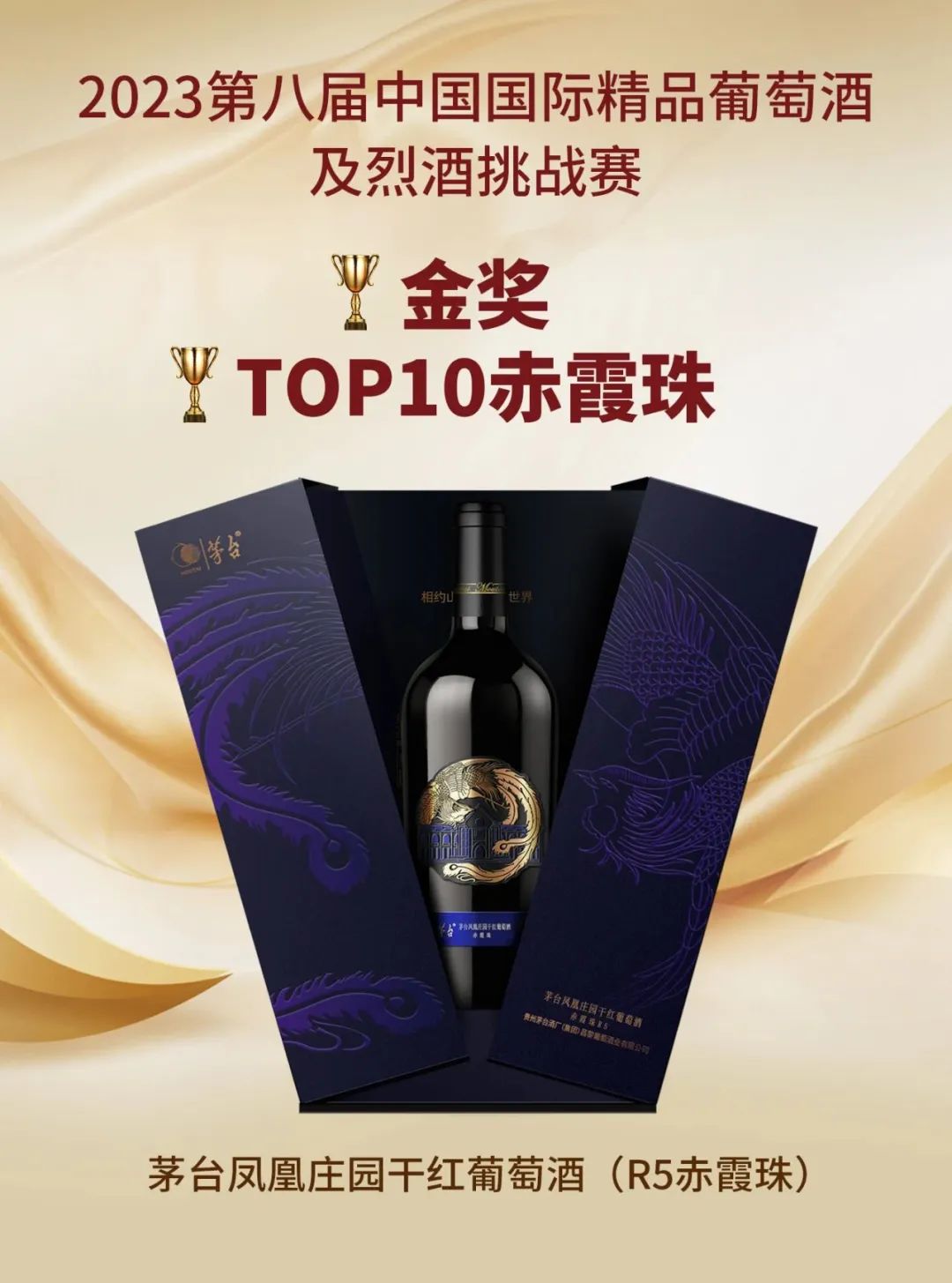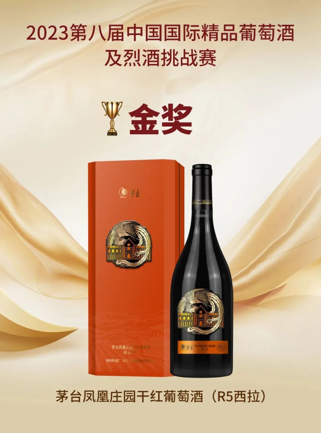 荣获赛事1枚大金奖:茅台(庄园 R5)赤霞珠干红葡萄酒2021荣获赤霞珠单品干红葡萄酒·大金奖暨最高分Trophy;