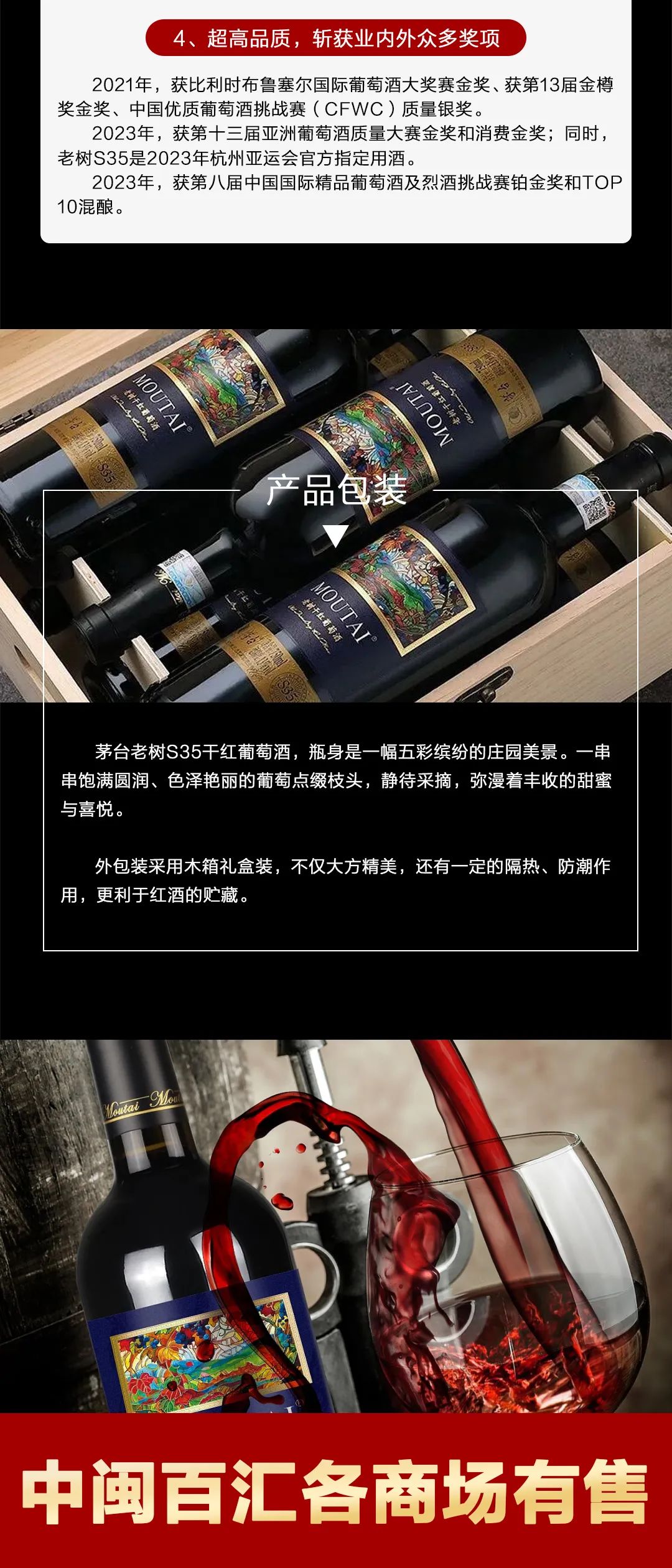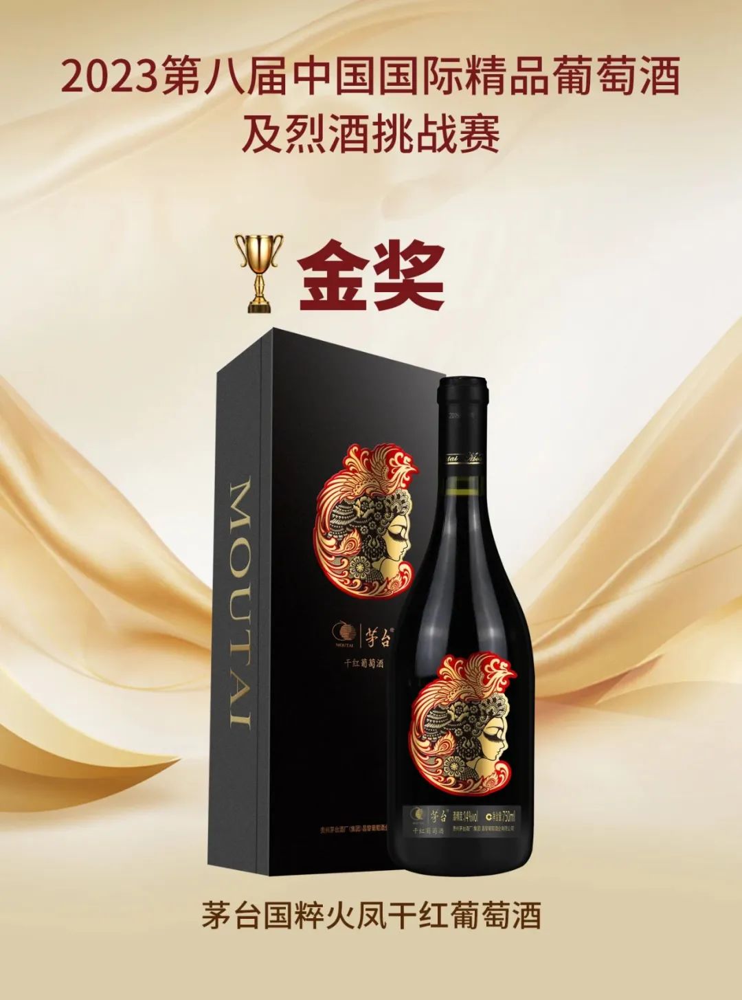 荣获赛事3枚金奖:茅台国粹火凤干红葡萄酒2019荣获赤霞珠单品干红葡萄酒类·金奖;茅台马瑟兰干红葡萄酒(庄园R5)2019荣获马瑟兰单品干红葡萄酒类·金奖;茅台大师珍藏干红葡萄酒2019荣获混酿干红葡萄酒类·金奖;